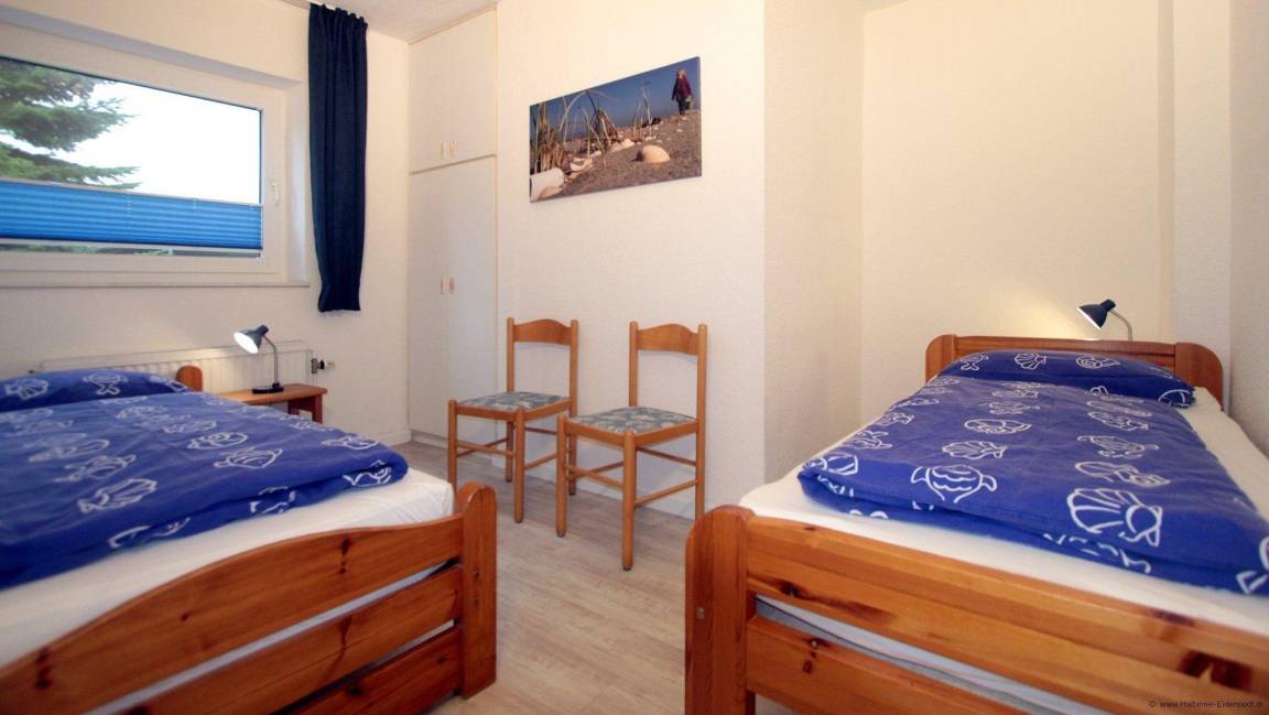 Unsere gemütliche Nichtraucher Ferienwohnung ist ideal geschnitten. Es erwartet Sie ein Schlafzimmer mit Doppelbett, Kleiderschrank, Nachttischen und Fernseher. Der Boden ist mit Laminat ausgelegt und das große Fenster verleiht dem Raum ein wohliges zuhause Gefühl. Das zweite Schlafzimmer ist zwei Einzelbetten eingerichtet, mit Laminatboden ausgelegt. Das Zimmer bietet auch Platz für Ihre privaten Sachen.