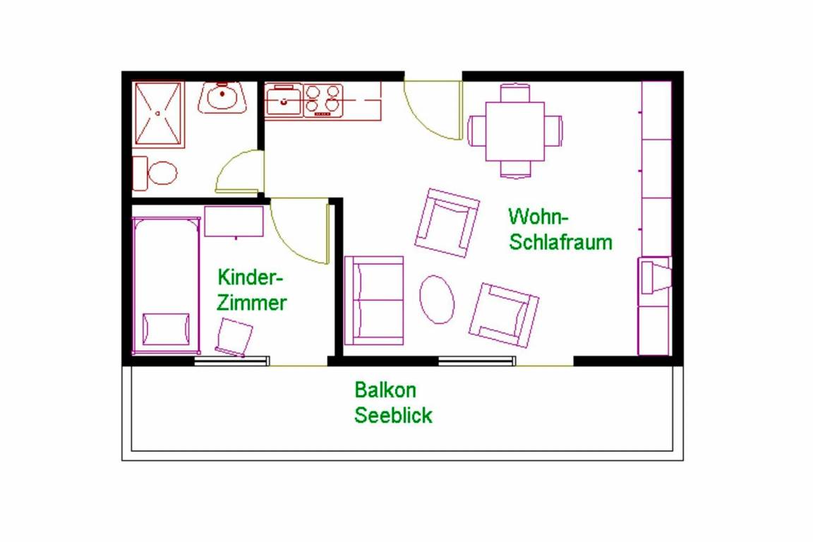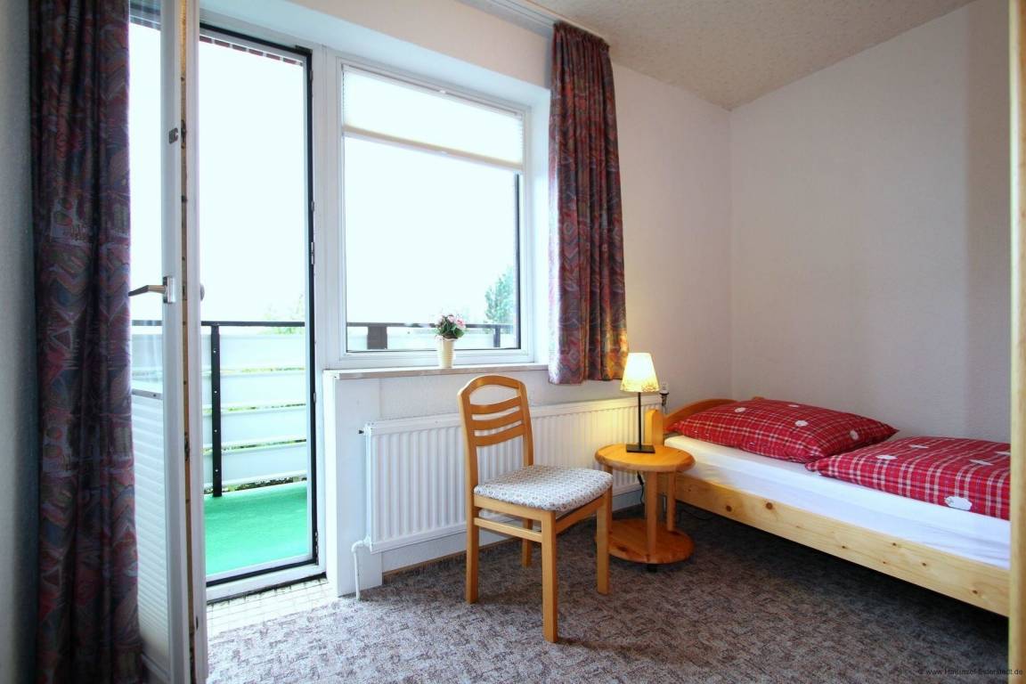 Das große Fenster gibt dem Raum viel Licht und Wärme. Begeben Sie sich auf den Balkon und lassen Sie sich von der Sonne verwöhnen. Des Weiteren umfasst die Ferienwohnung ein Kinderzimmer mit einem Einzelbett und Kleiderschrank. Vom Zimmer gelangt man direkt auf den Südbalkon. Das Badezimmer ist mit Dusche und WC ausgestattet und lässt Ihnen Platz für Ihre Utensilien.