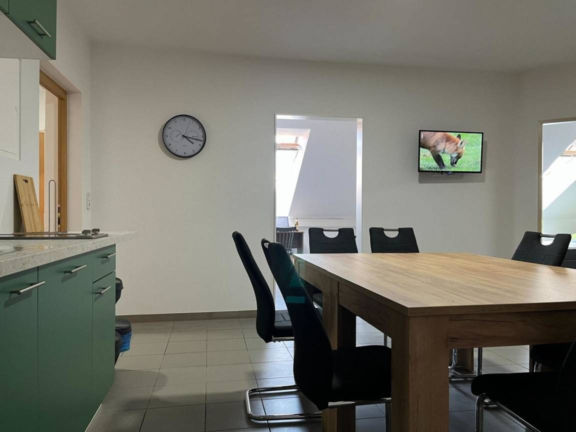 Das Apartment im 1. Stock ist ausgestattet mit kompletter Küche, Herd, Backofen, Mikrowelle, Kühlschrank mit Gefrierfach und Waschmaschine (10 kg).