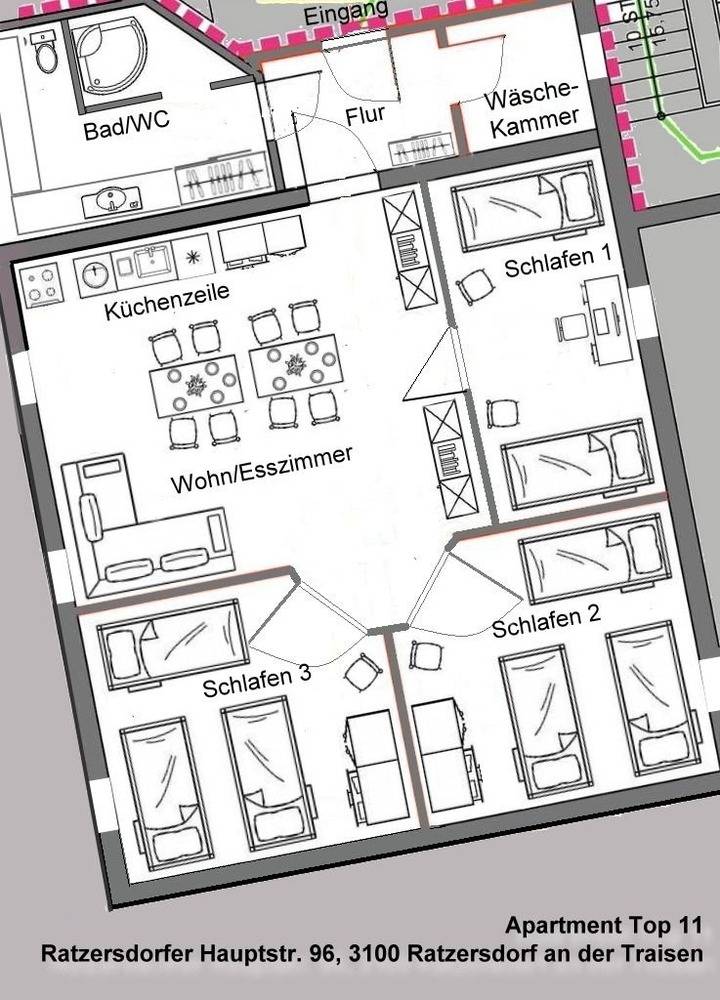 An der Adresse Ratzersdorfer Hauptstr. 96, 3100 St. Pölten steht Ihnen in der Geschäfts- und Wohnanlage dieses wunderschön eingerichtete Apartment Top 11 zur Verfügung.