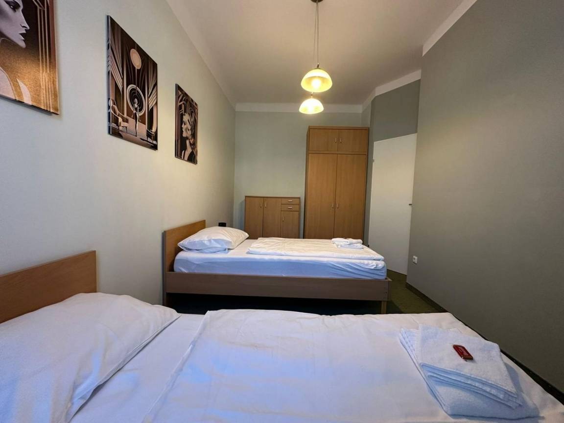 Ihr Hotel-Apartment Nr. 016 im Erdgeschoss mit eigenem Wohnungseingang im Hotelhof hat 2 Schlafräume und eine große Wohnküche mit Duschbad und separatem WC. Es stehen insgesamt 4 Einzelbetten zur Verfügung, welche auch ganz bequem zu je 2 großen Doppelbetten (Kingsize) zusammengeschoben werden können. Ideal für 2 befreundete Paare oder Familie mit 2 Kindern und auch für Langzeitaufenthalt oder als Dienstwohnung hervorragend geeignet.