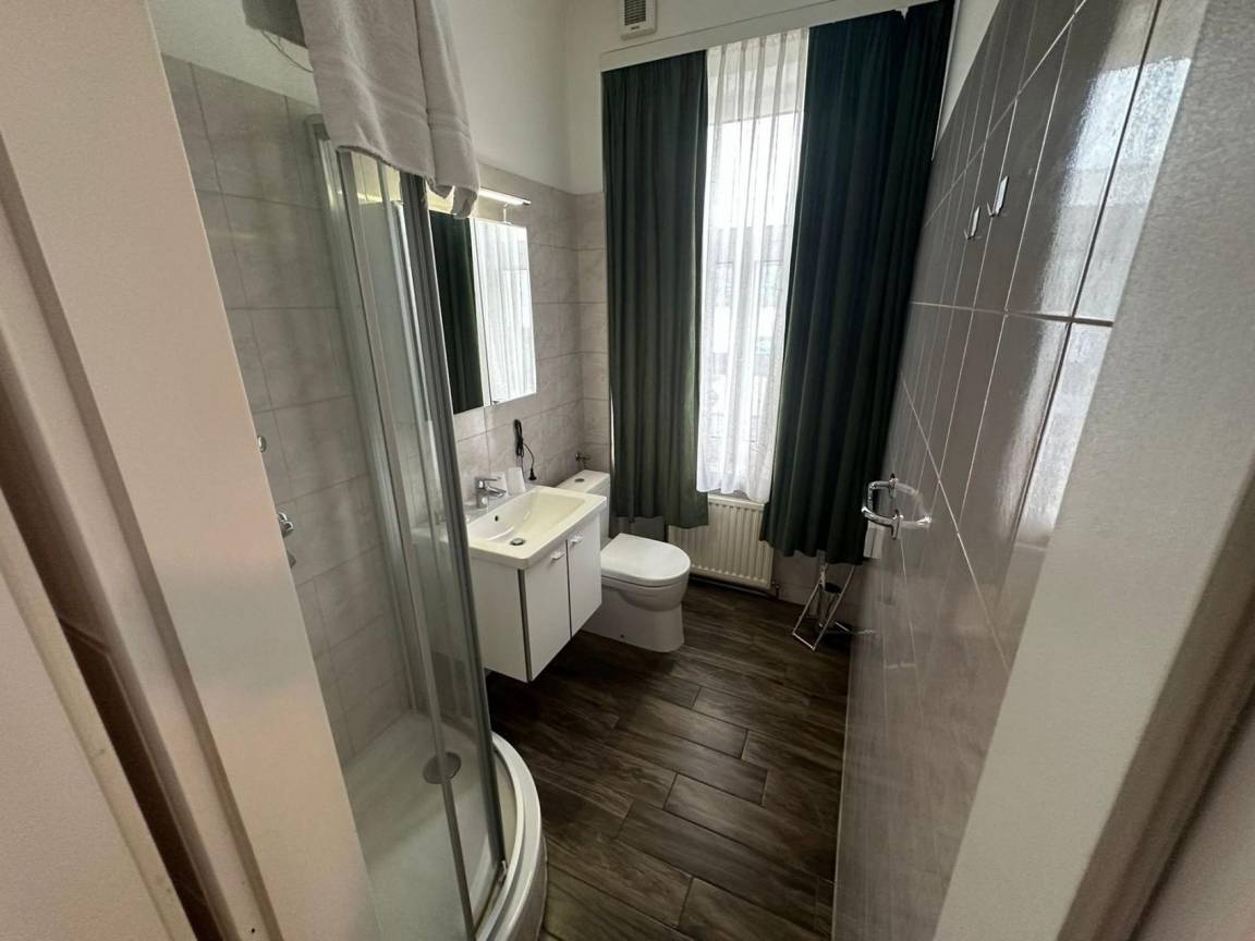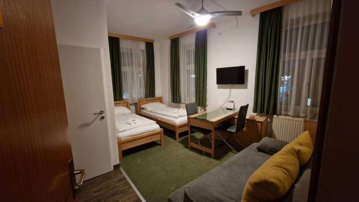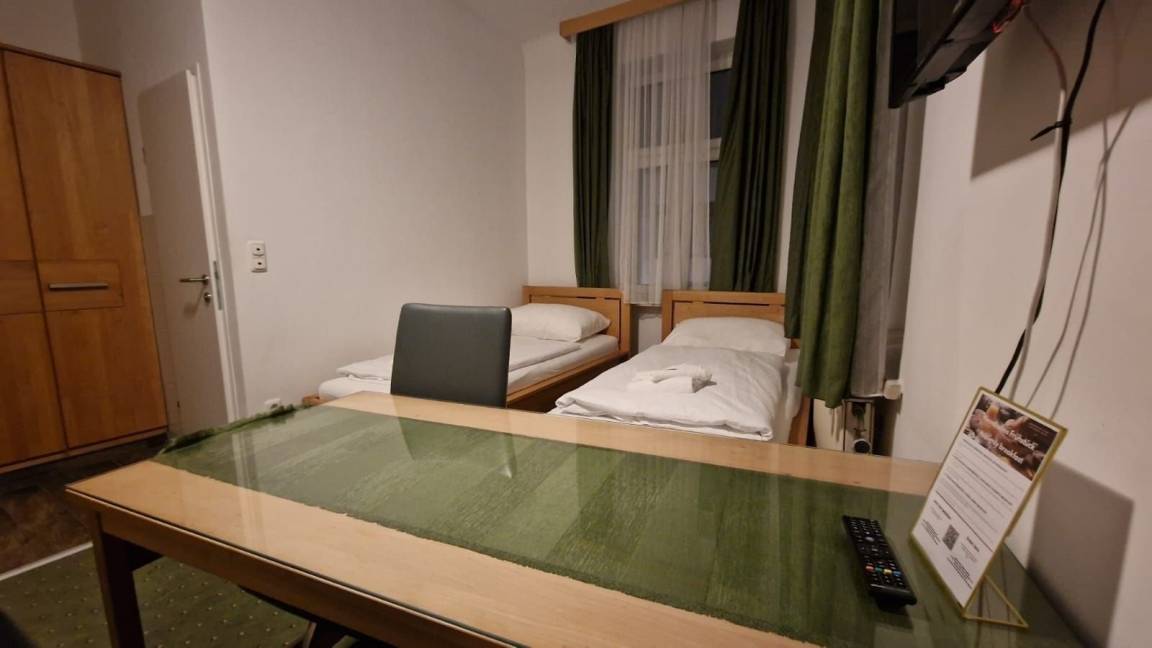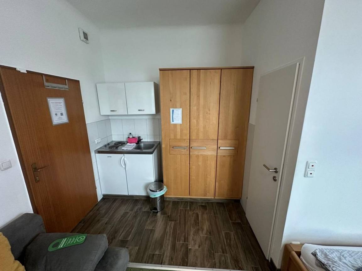 Ihr besonders großes Studio Nr. 107 im 1. Stock ist ausgestattet mit 2 Einzelbetten sowie einer bequeme Schlafcouch für die 3. Person, zusätzlich Schreibtisch, TV, WLAN, Duschbad/WC und kleiner Küche. Die schalldichten Fenster sorgen für eine angenehme Nachtruhe.