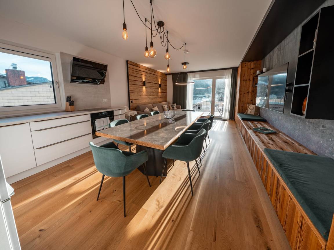 Hausbeschreibung : Willkommen im Zirbennest – Ihrer gemütlichen und modernen Ferienwohnung in Mariazell, die Wohnung ist für max. 6 Erwachsene und 4 Kinder ausgerichtet! Ein besonderes Highlight des im ersten Stock gelegenen Apartments sind die maßgefertigten Doppelstockbetten aus Zirbenholz, die für einen tiefen, erholsamen Schlaf sorgen. Ein Carport für Ihr Auto ist inklusive und im Untergeschoss wartet eine Sauna (gebührenpflichtig) auf Sie, ideal nach einem sportlichen Skitag - der Skilift ist 350 m entfernt!