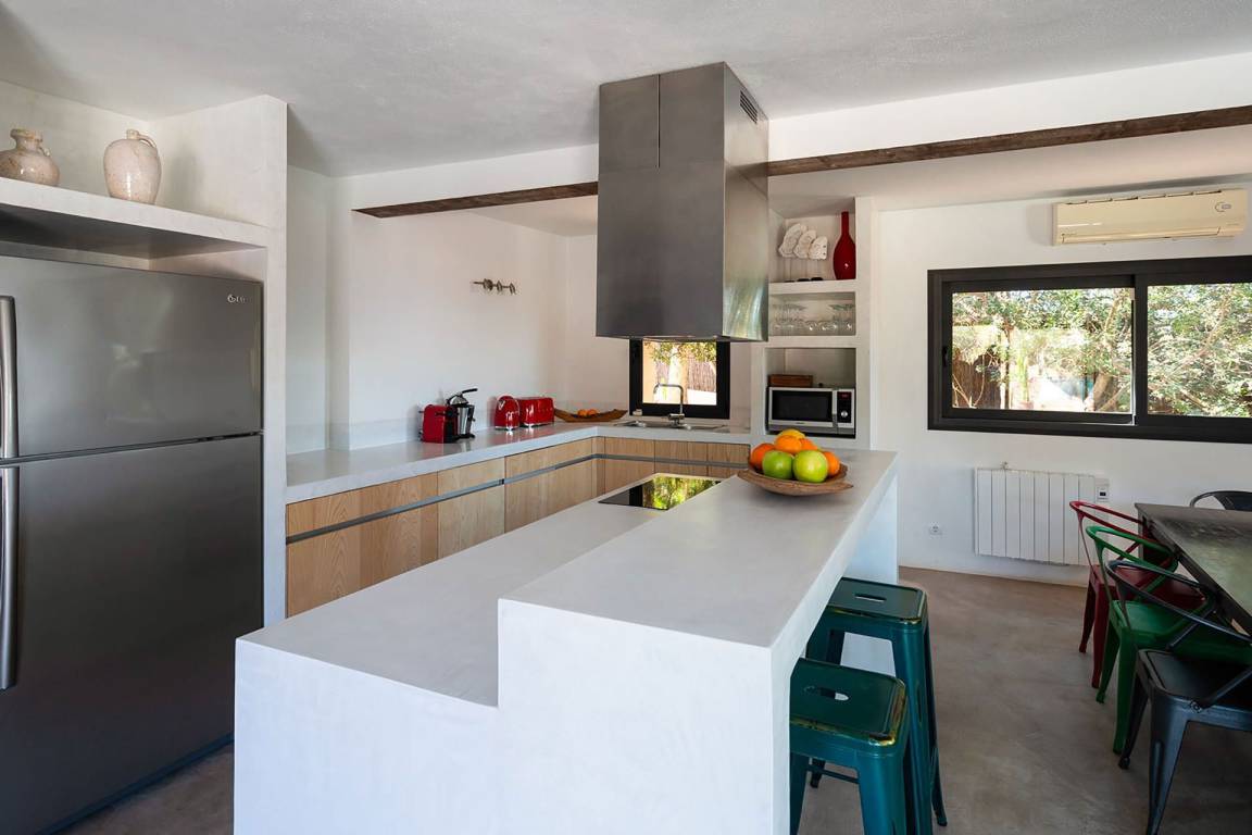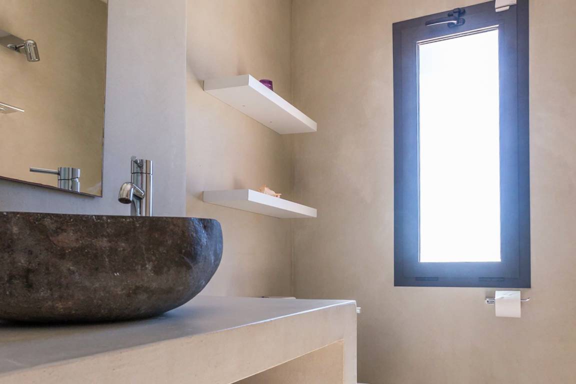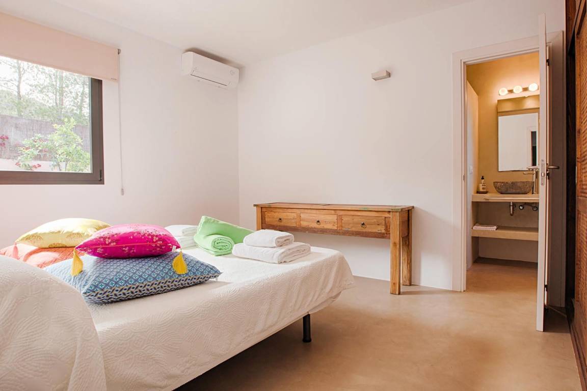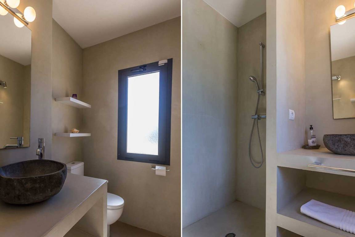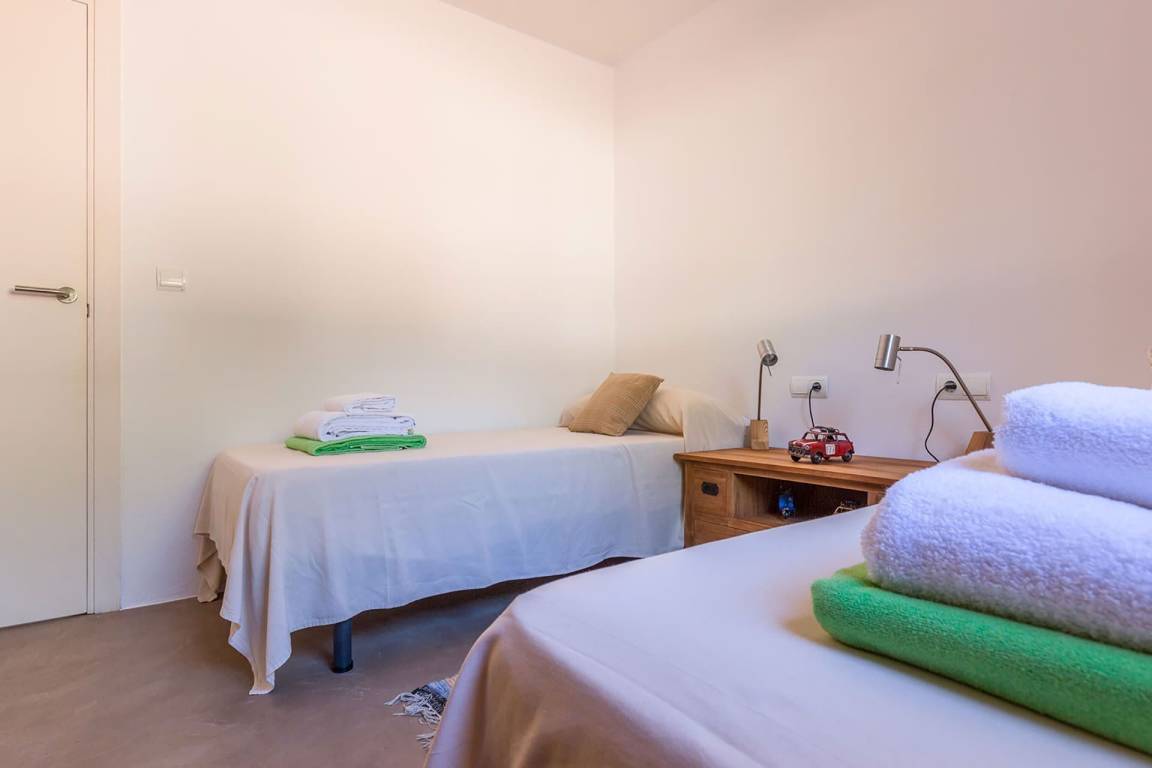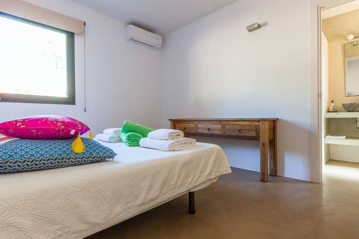Die Villa verfügt über eine Gesamtfläche von 4 Schlafzimmern und 3 Bädern und bietet Platz für bis zu 8 Gäste. Die Schlafzimmer sind auf mehrere Ebenen verteilt und ermöglichen eine optimale Raumnutzung mit natürlicher Belichtung. Die Bäder sind vollständig ausgestattet und bieten alle notwendigen Einrichtungen. Die Raumaufteilung verbindet die innenliegenden Wohnbereiche nahtlos mit den Außenbereichen.