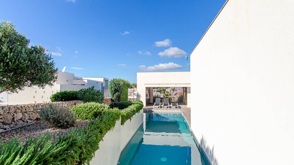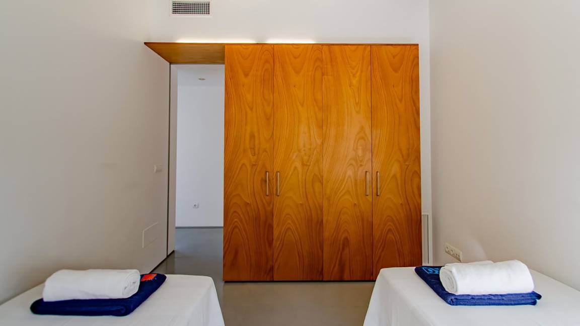 Die Villa bietet Platz für bis zu 8 Gäste und verfügt über 4 Schlafzimmer sowie 2 Bäder. Die Räume sind funktional angeordnet und verbinden zeitgenössisches Design mit praktischem Wohnkomfort. Jedes Schlafzimmer ist als privater Rückzugsort gestaltet. Die beiden Bäder sind gut ausgestattet und von den Wohn- und Schlafbereichen leicht erreichbar.