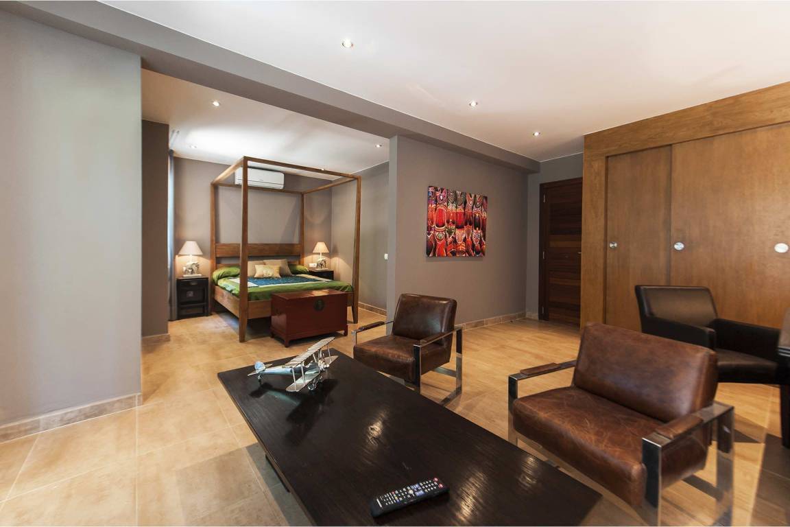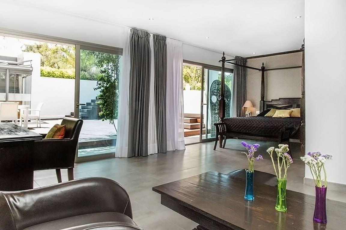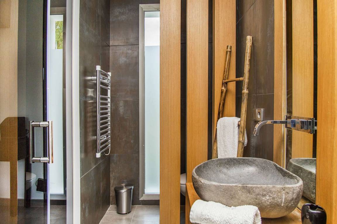 Die Villa bietet Platz für bis zu 12 Gäste und verfügt über 6 Schlafzimmer sowie 6 Bäder. Die Räume verteilen sich über mehrere Geschosse. Jedes Schlafzimmer ist als separater, privater Rückzugsort gestaltet. Die 6 Bäder sind vollständig ausgestattet und gewährleisten Komfort und Privatsphäre für alle Gäste.