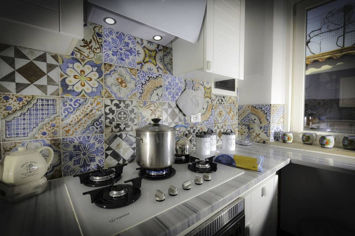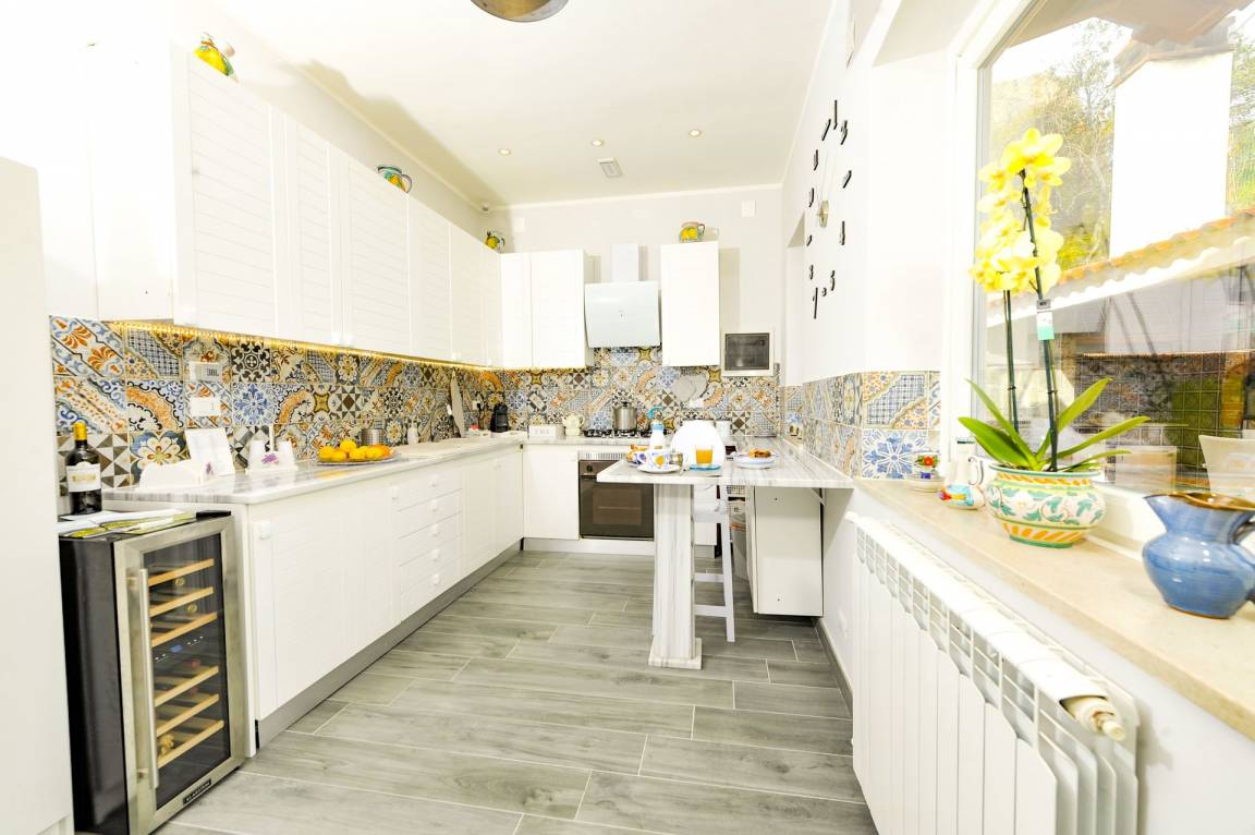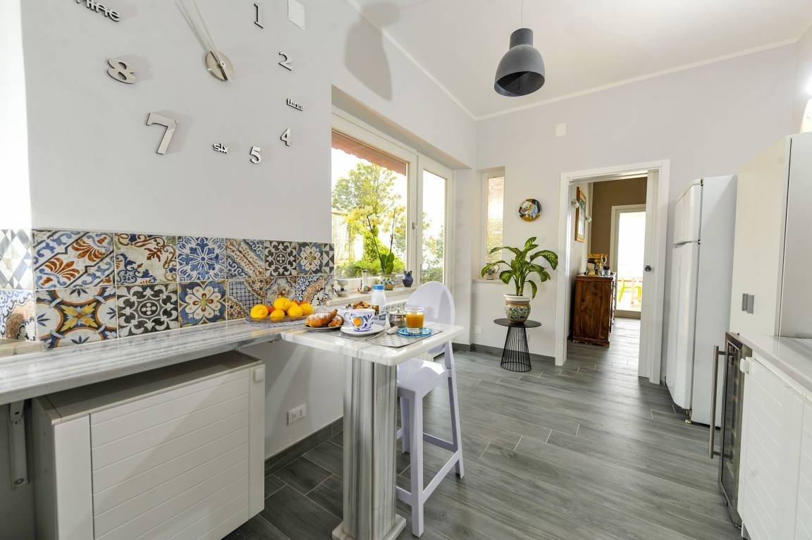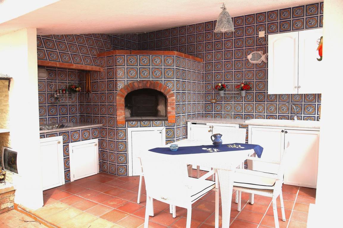 Küche (20 m²): Kühlschrank, Tiefkühler, Herd, Ofen, Toaster, Bügeleisen, Italienische Kaffeemaschine, WiFi Internet, Ausgang auf den Patio.
