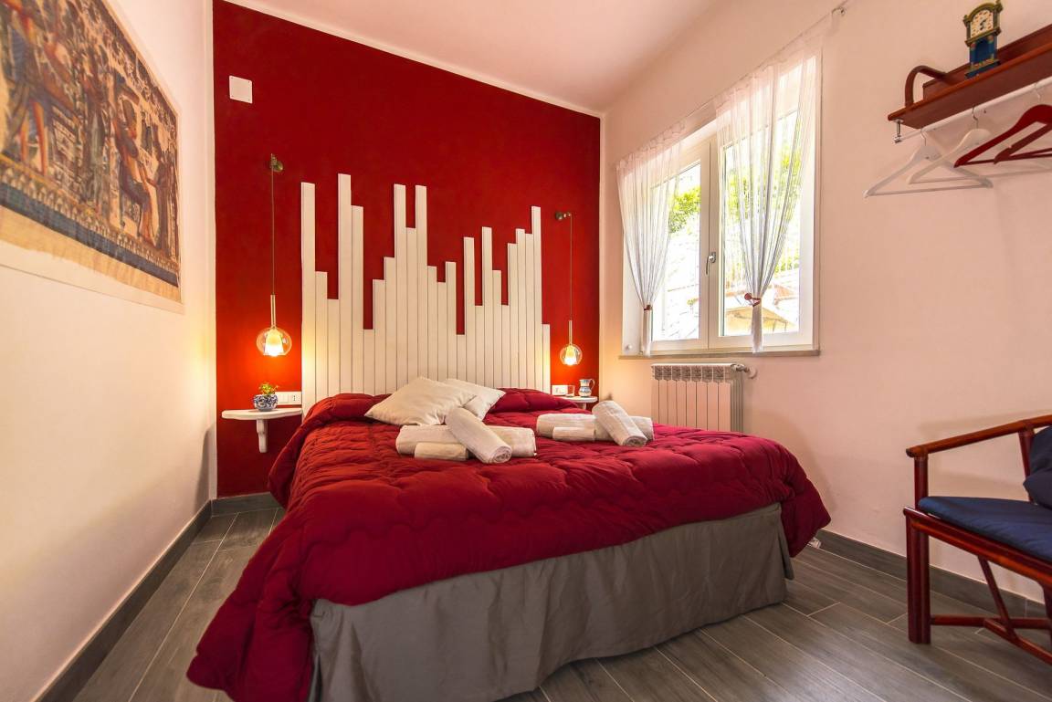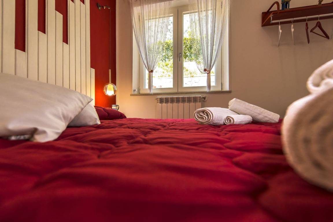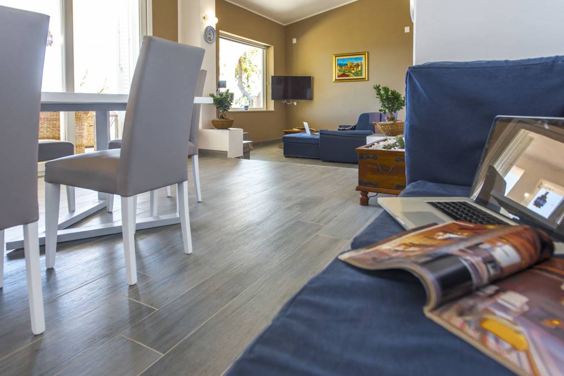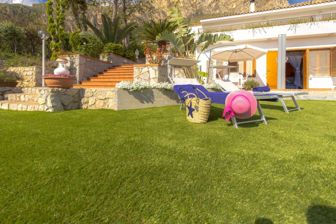 offener Raum (50 m²): Esstisch (Personen: 4), Doppelbett (Breite: 190m, Länge: 160m), Sofa bed (Breite: 90m, Länge: 120m), WiFi Internet, Klimaanlage, Satelliten-TV, Kühlschrank, Herd, Tiefkühler, Bügeleisen, Ofen, Italienische Kaffeemaschine, Ausgang auf den Garten.