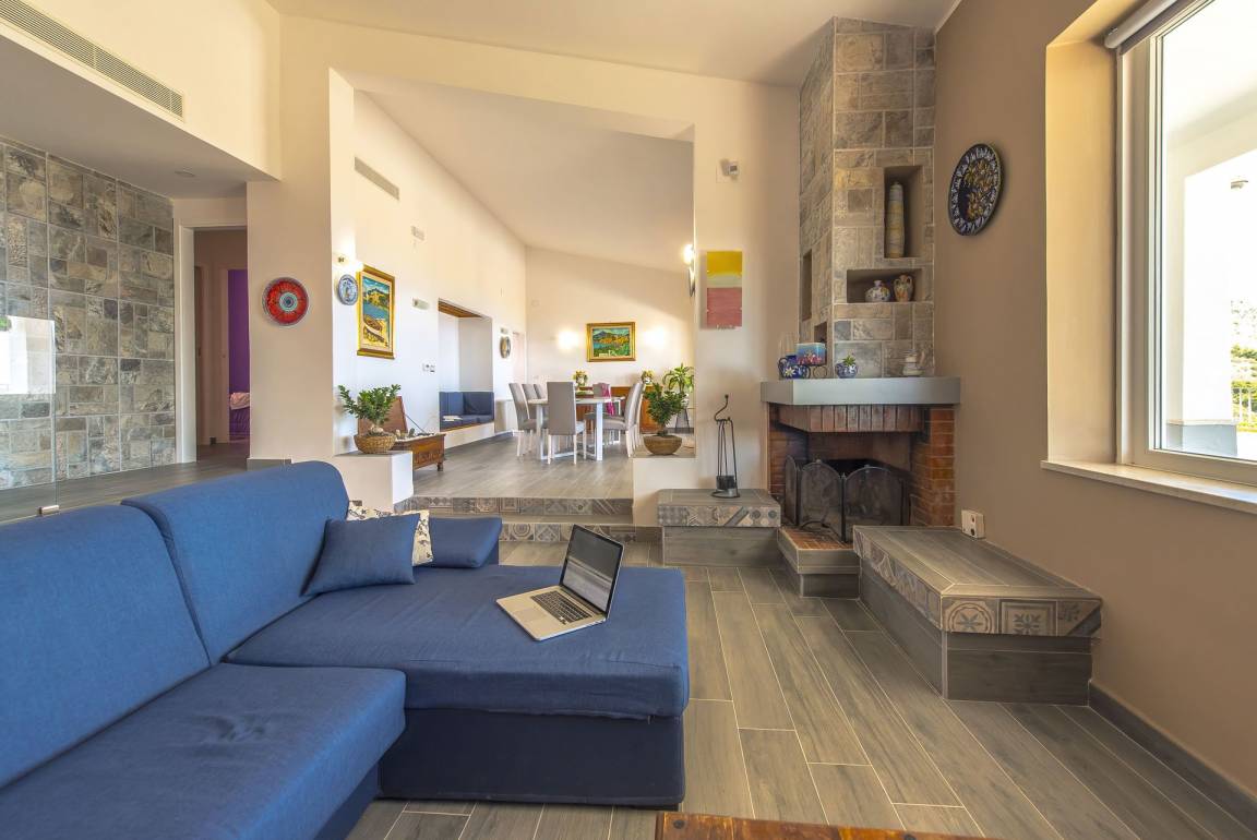 Wohnzimmer (80 m²): Kamin, Kamin, Esstisch (Personen: 8), Doppel-Schlafsofa (Breite: 190m, Länge: 160m), WiFi Internet, Klimaanlage, TV, Ausgang auf den Garten, Ausgang auf den Patio.