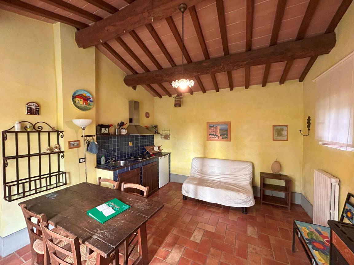 Mit Wohnküche, Schlafzimmer, Badezimmer.