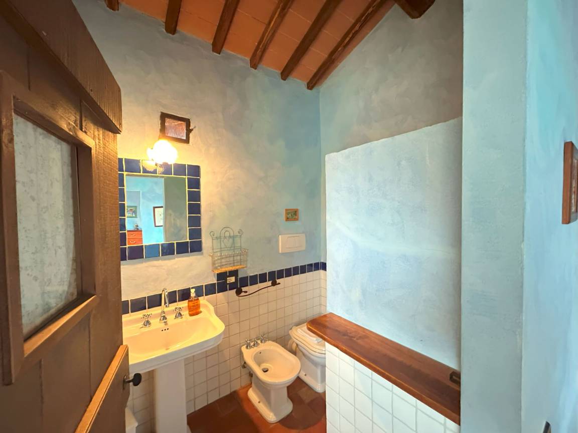 Badezimmer: Waschbecken, WC, Bidet, Dusche, Fön, WiFi Internet.
