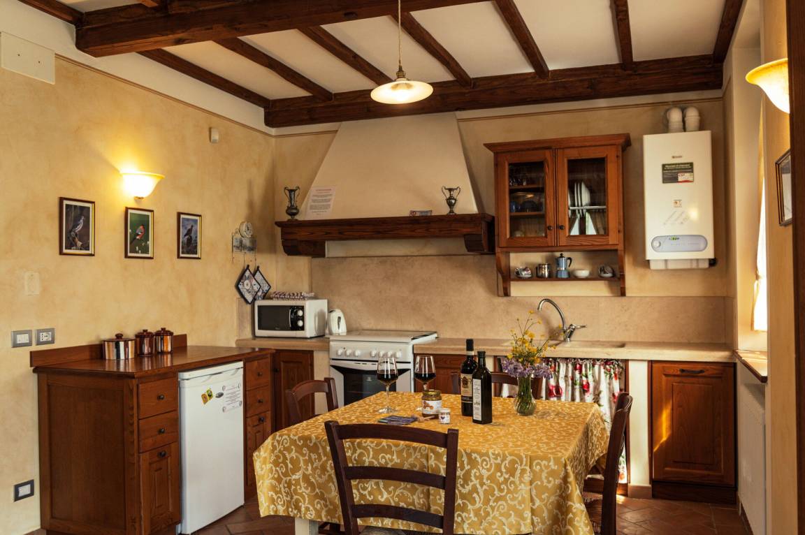Wohnküche: gut ausgestattete Küche, Esstisch, Spülmaschine, Kühlschrank, Tiefkühler, Mikrowelle, Herd, Ofen, Toaster, Italienische Kaffeemaschine, Amerikanische Kaffeemaschine, zwei Sofas (Personen: 2), Schreibtisch, Kamin, WiFi Internet, Klimaanlage, Fliegengitter, Kinderhochstuhl, Deckenventilator, Ausgang auf den Garten.