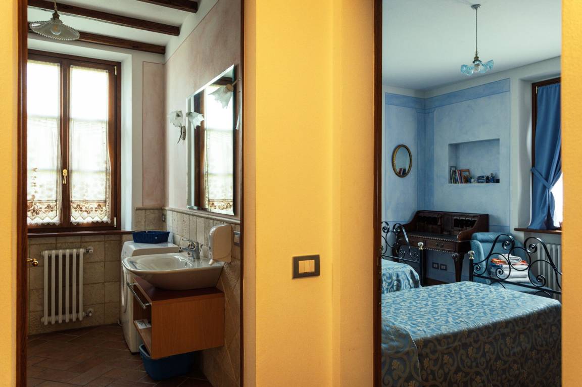 Badezimmer: Waschbecken, WC, Bidet, Dusche, Fön, Waschmaschine, WiFi Internet.