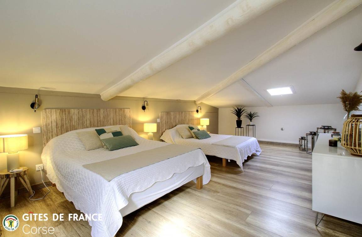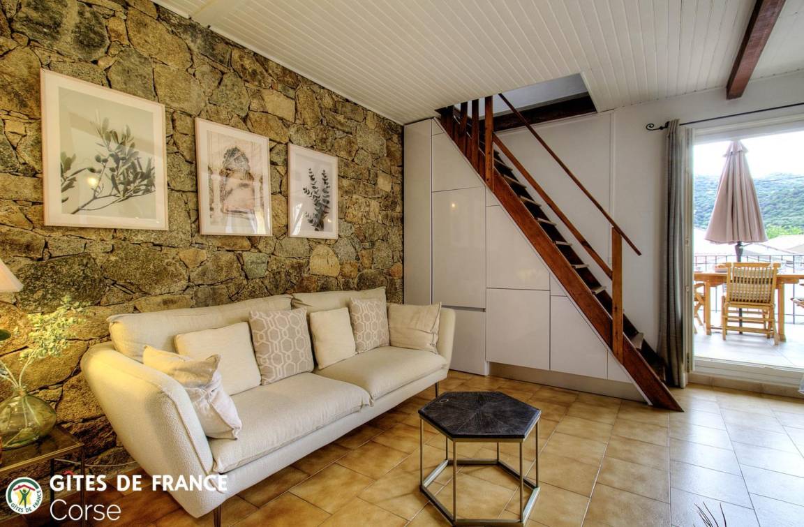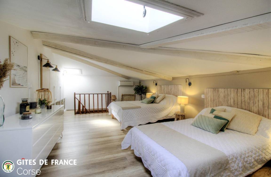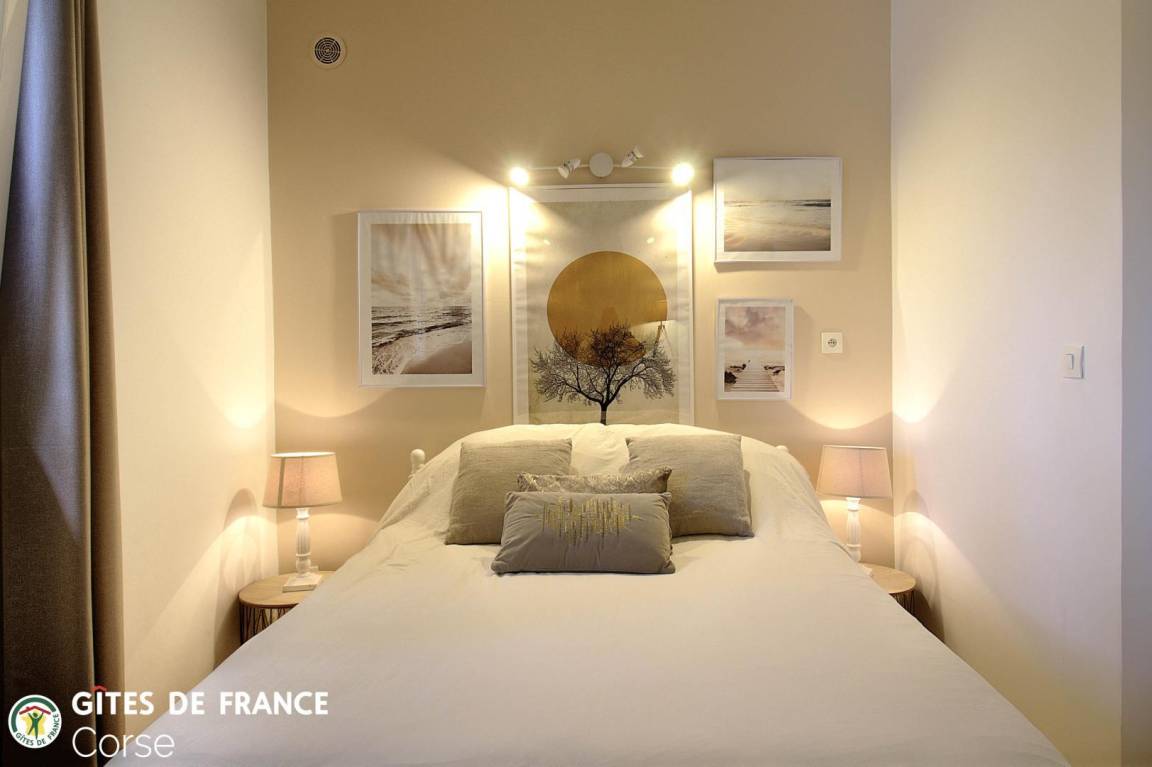 1,5 km von Ile Rousse entfernt, 45 m² große Wohnung in einem Steinhaus, das die angrenzende Wohnung der Eigentümer sowie die Ferienwohnung 64591 in der Nähe umfasst. Sie ist wie folgt aufgeteilt: Erdgeschoss: - Wohnzimmer/Küche - 1 Schlafzimmer mit 1 Bett (140 x 190 cm) - Badezimmer/WC Obergeschoss (Zugang über eine steile Treppe): - 1 Schlafzimmer von 7 m² (direkter Zugang über die Treppe vom Wohnzimmer/Küche, ohne Tür) mit 1 Bett (140 x 190 cm) und 1 Bett (120 x 190 cm) (Grundfläche des Schlafzimmers: 25 m²) Zugang zur Ferienwohnung über eine Treppe mit insgesamt etwa fünfzehn Stufen Zwei zusätzliche Personen können im Zimmer mit Zugang zur Treppe untergebracht werden, zum Preis von 90 € pro Person und Woche - 16 m² große Terrasse - Gartenmöbel - Elektrogrill - Parkplatz hinter dem Haus - Klimaanlage im Wohnzimmer/in der Küche und im Zimmer mit Zugang zur Treppe - Waschmaschine - Geschirrspüler - Wasserkocher - Toaster - Mikrowelle - Gefrierfach - Filter- und Pad-Kaffeemaschine - Fer