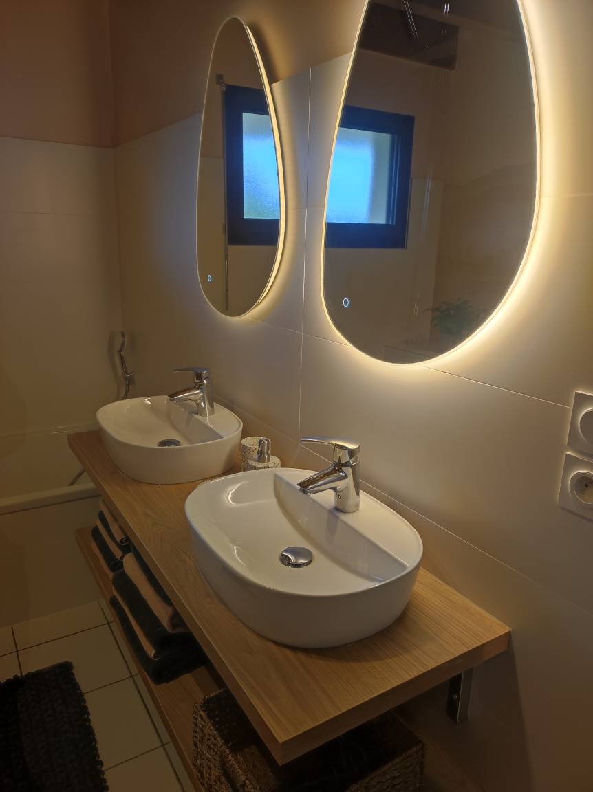 „Tres bon accueil, gite parfait: Grand espace de vie, chambres et salles de bain plaisantes et propres, cuisine nickel - rien ne manque - deco exceptionnel. Jardin très agréable et une tranquillité appréciée Un ensemble agrémentant notre séjour. Nous y reviendrons et le recommandons fotement. Grand merci au charmant propriétaire“