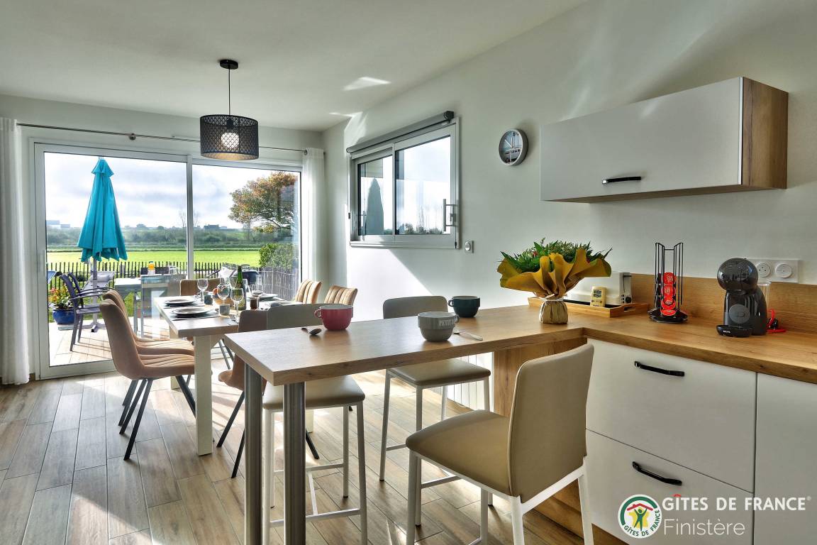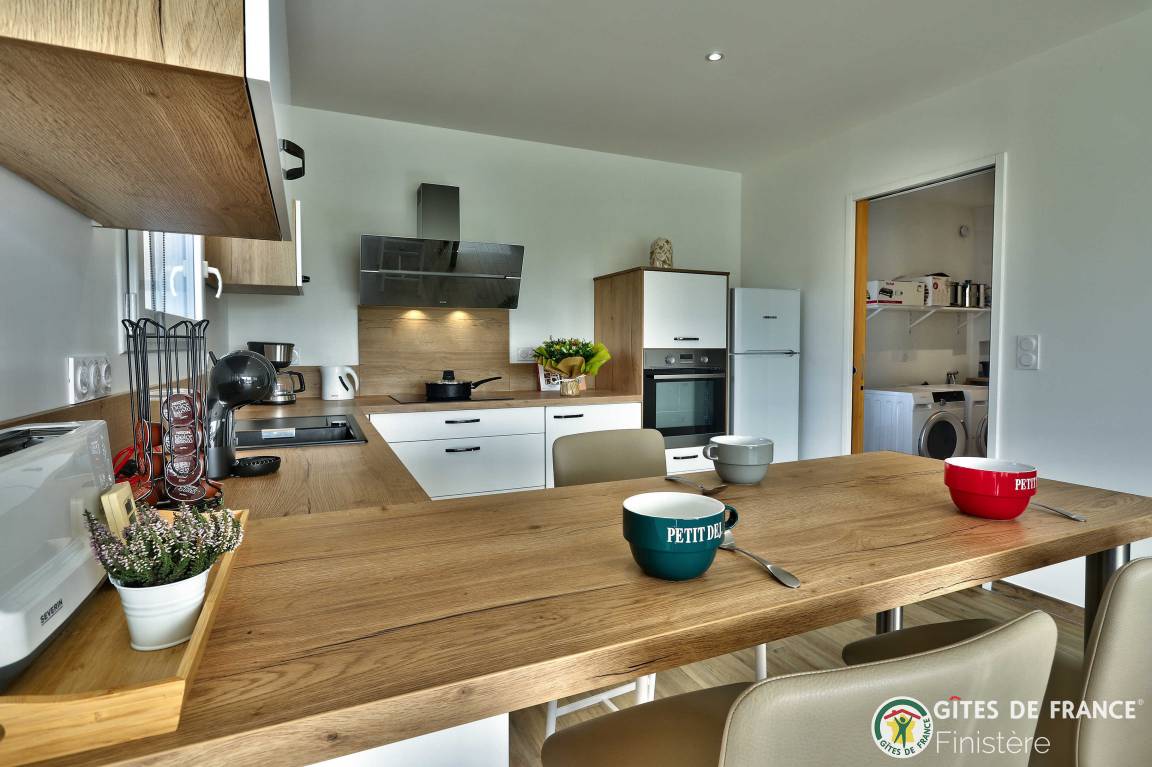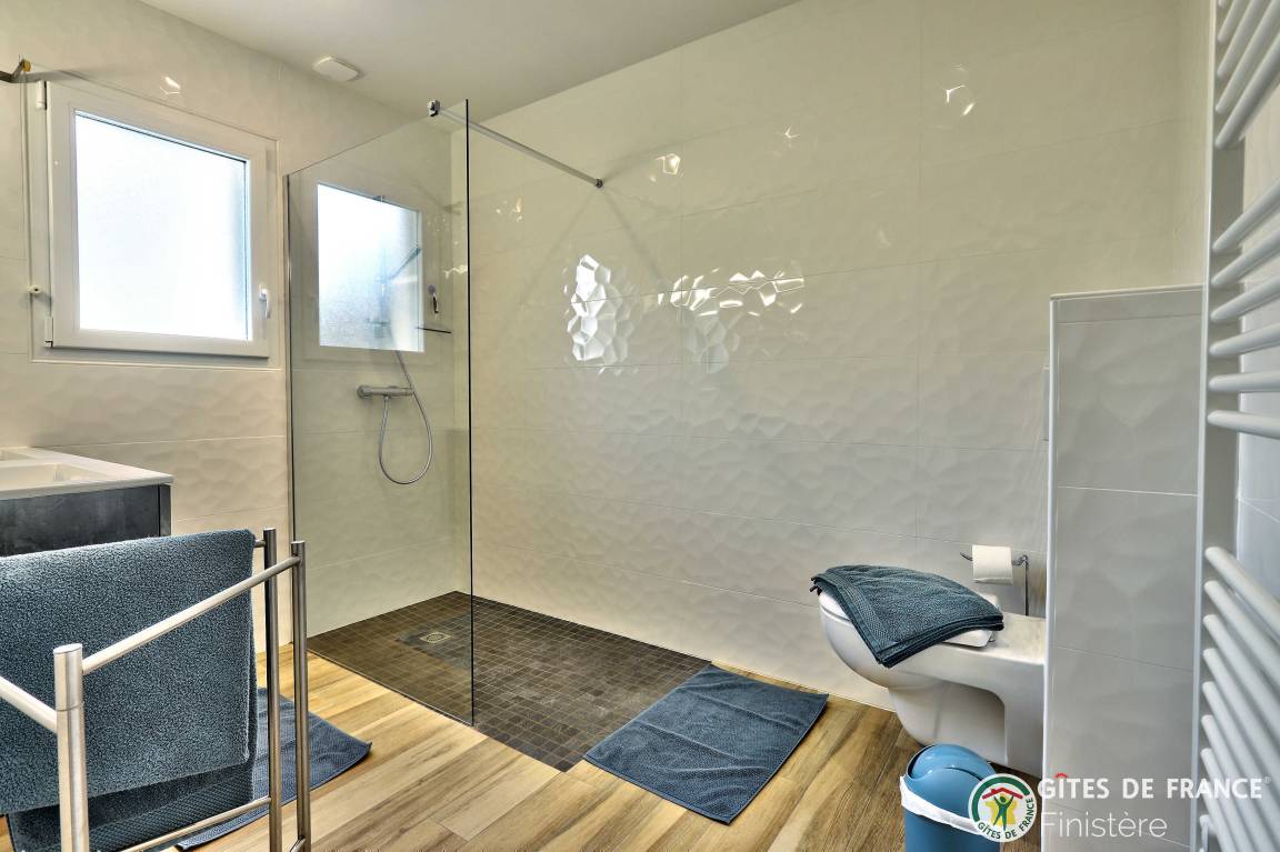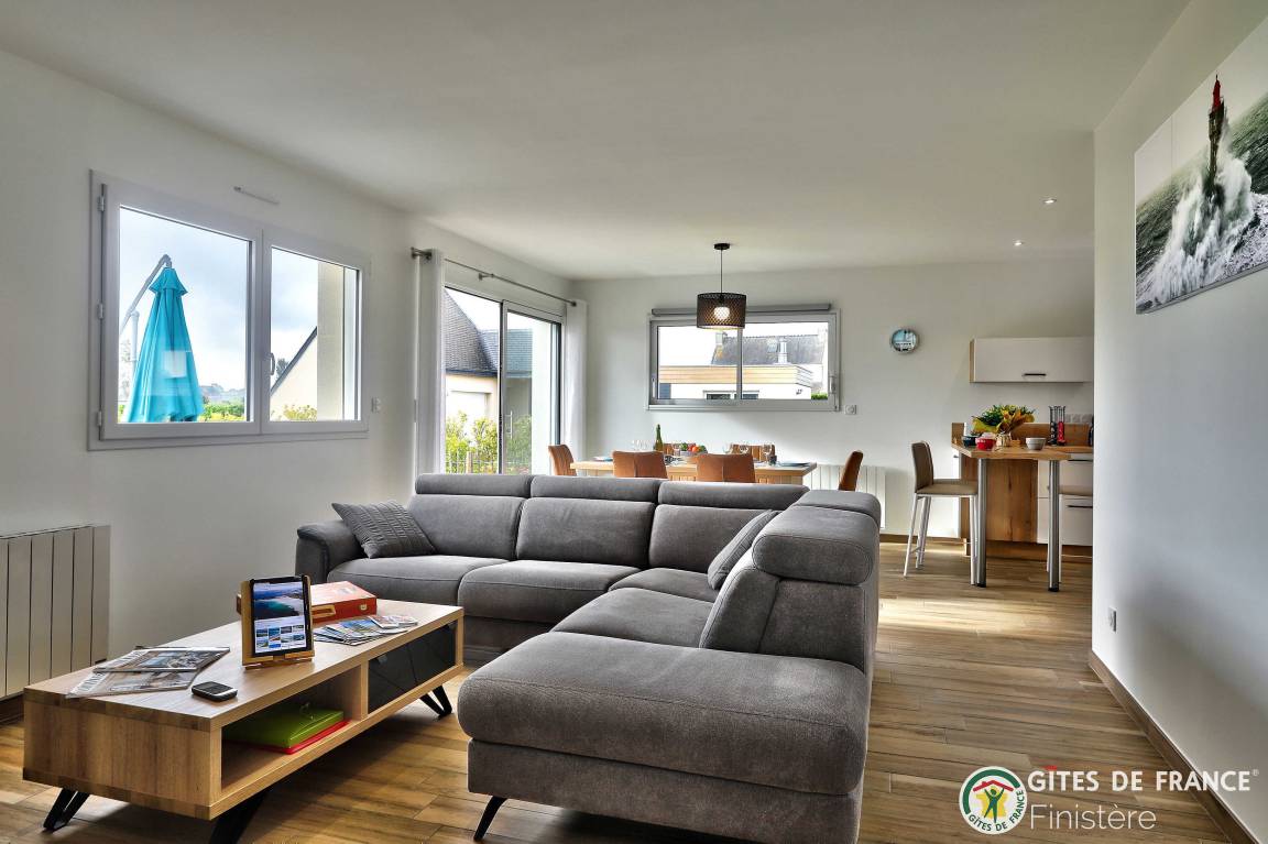 „Wir hatten als Familie mit drei Kindern einen sehr schönen Aufenthalt in diesem schönen Häuschen. Wir wurden von den Eigentümern herzlich empfangen, die generell sehr diskret waren. Das Ferienhaus besitzt alles, was man für einen gelungen Aufenthalt in den Ferien benötigt inkl. Geschirrspülmaschine, Waschmaschine und Trockner uvm.. Wir hatten genug Platz im und ums Haus zum Schlafen, Spielen, Leben… Mit dem Fahrrad war es zum wunderschönen Surferstrand Doussen mit 10 min. nicht weit. Das haben wir sehr genossen. Ebenso sind zwei tolle Boulangeries in wenigen Autominuten zu erreichen. Generell ist es eine wunderbare Region der Bretagne, wunderschöne Strände, (kleine) Städtchen - also viel zu entdecken in geringem Umkreis.“