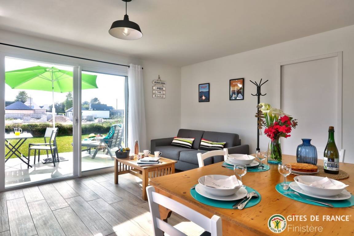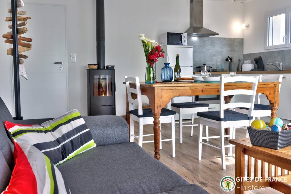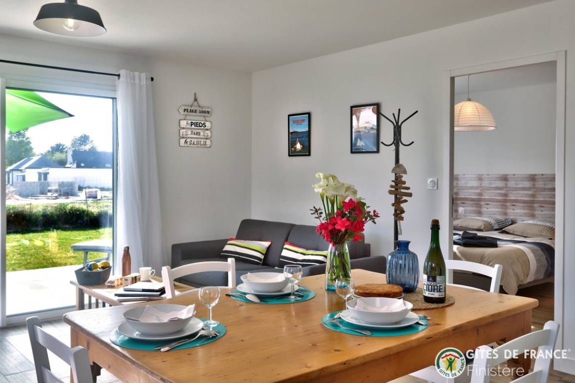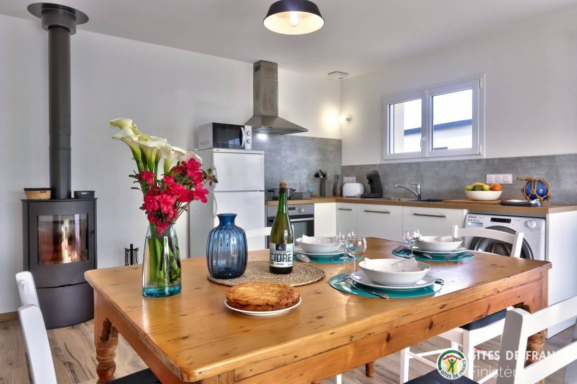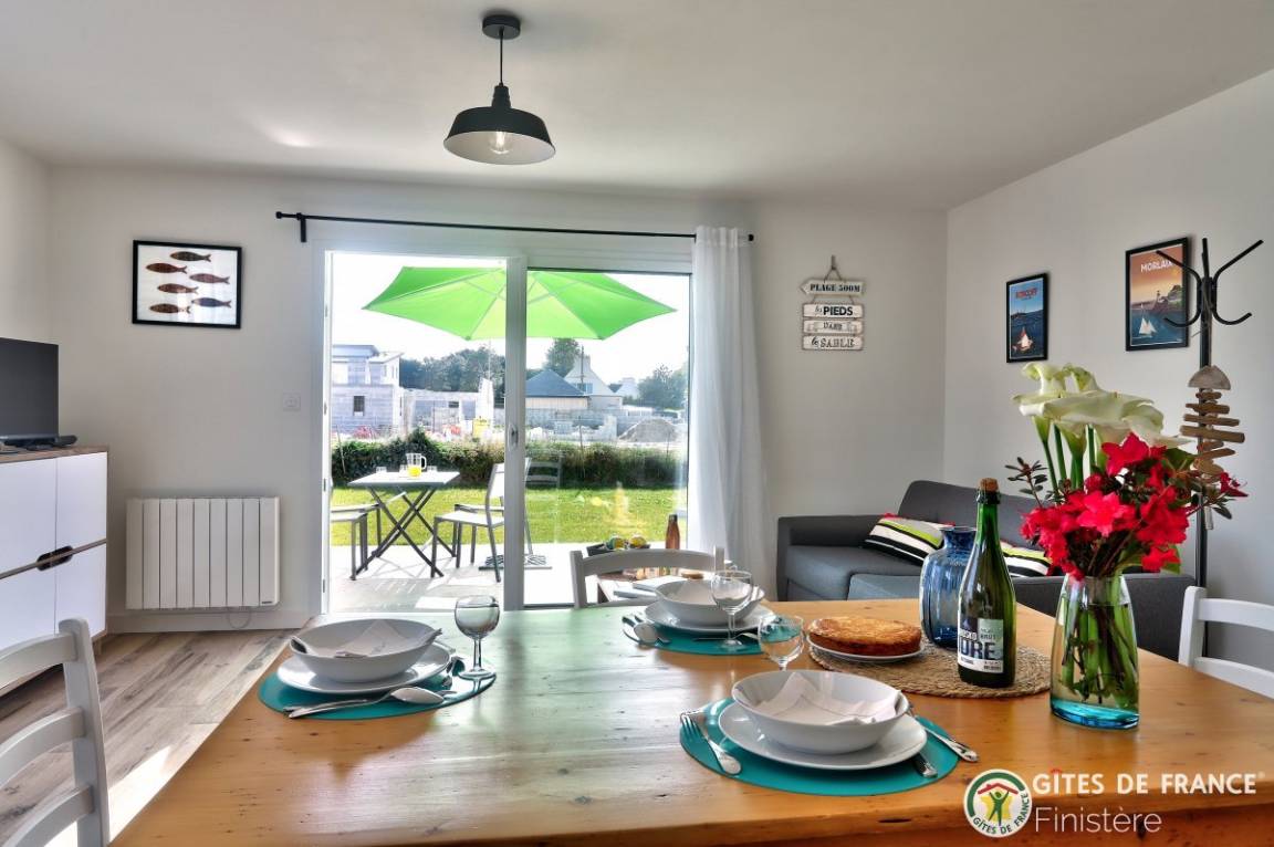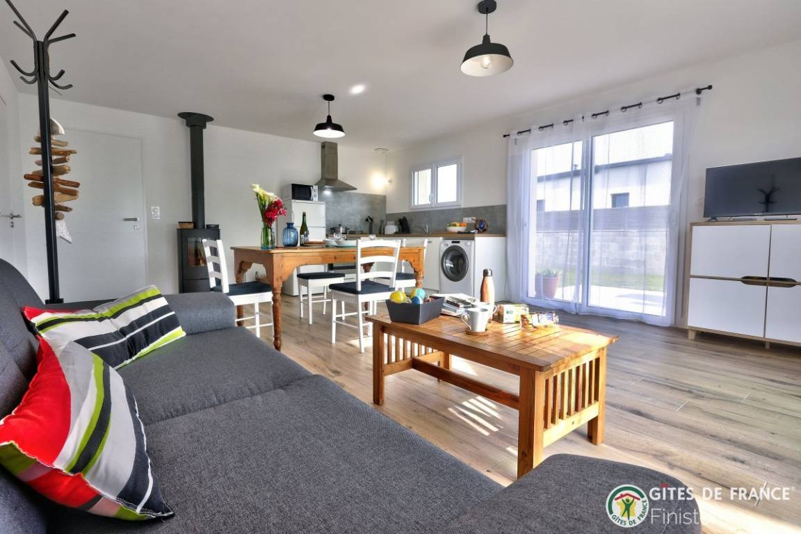 „Maison idéalement située et neuve, bien équipée et propriétaire à l écoute. Je recommande. Si on revient en Bretagne, nous relouerons.“