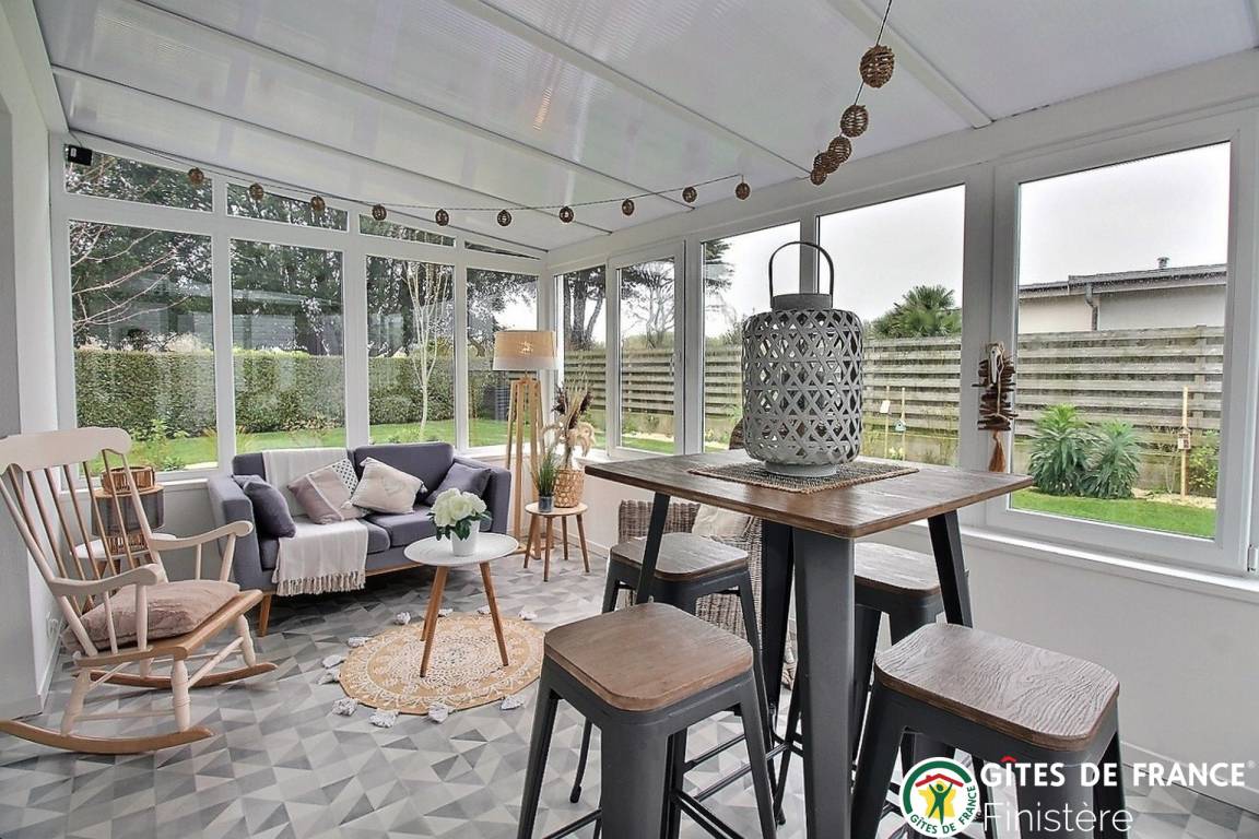 „Gîte confortable et décoré avec goût Très agréable véranda Proche de la mer à pied Propriétaires charmants“