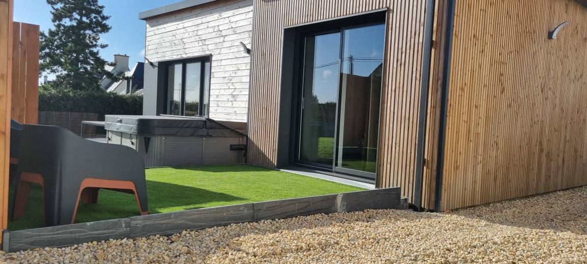 „La maison est récente et moderne, en excellent état. Elle est lumineuse et très bien équipée. Le jacuzzi est simple d’utilisation. L’emplacement, à proximité de la mer, est idéale pour les balades. Très beau séjour en famille.“