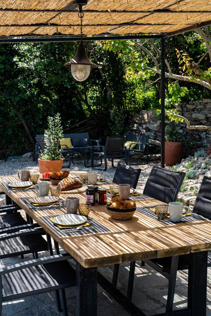 - Terrasse mit Gartenmöbeln auf dem oberen Teil des Grundstücks.