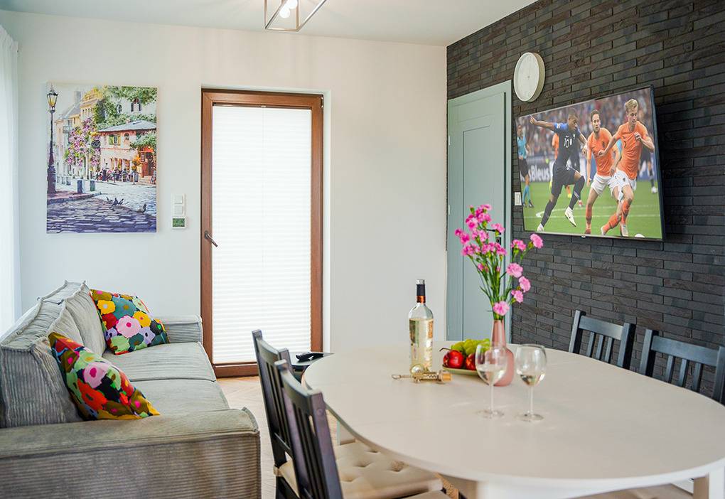Nebenkosten Strom nach Verbrauch (2,50 Zl./kWh). Kurtaxe. Bettwäsche vorhanden. Zusätzliche Leistungen Kostenloser Internetzugang über W-Lan. 1 Pkw-Stellplatz im Preis inklusive. Kaution 100 €. Kinder Babybett/Hochstuhl nur innerhalb der maximalen Personenzahl, jeweils ohne Berechnung. Haustier nicht erlaubt.Räume & Aufteilung
