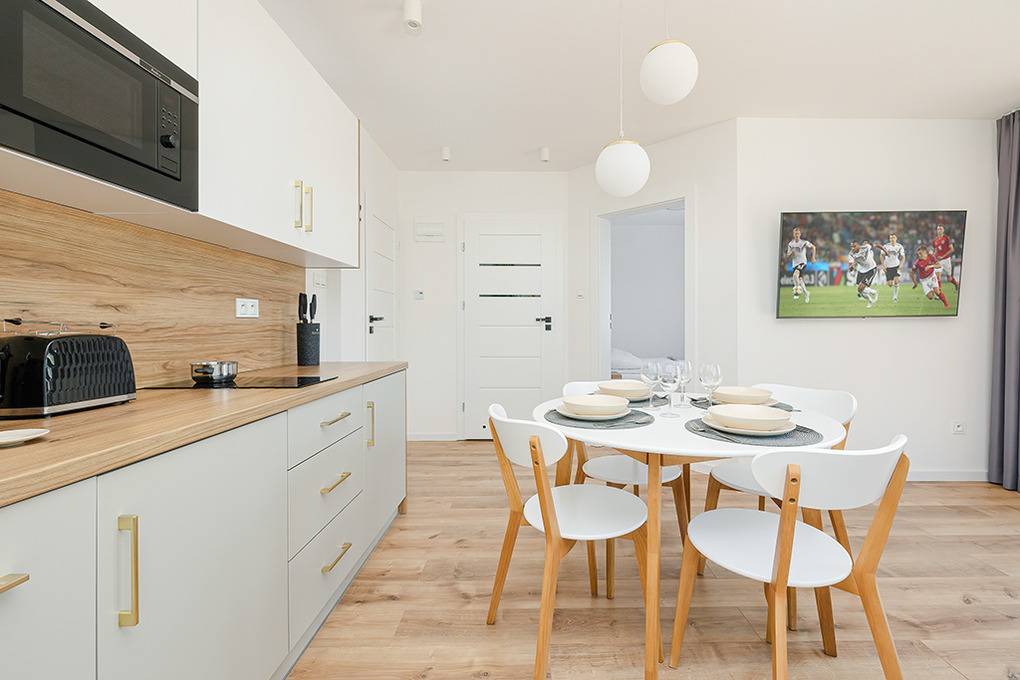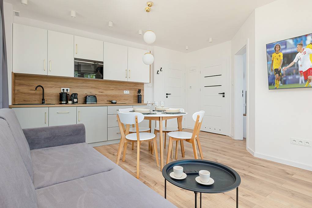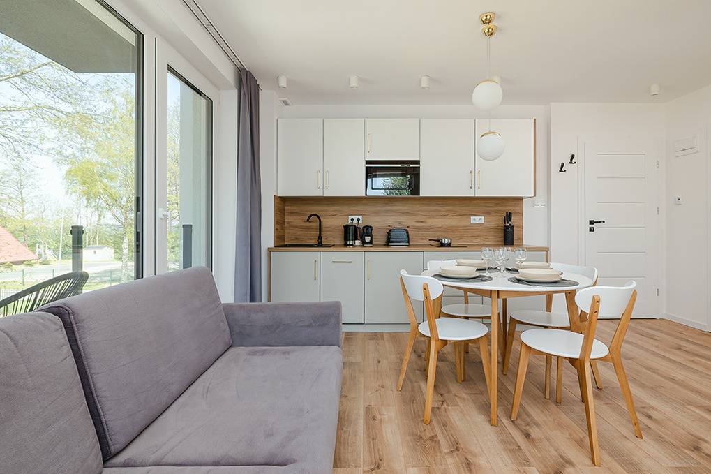Nebenkosten Endreinigung 150 Zl. Kurtaxe. Bettwäsche vorhanden. Handtücher leihbar 20 Zl./Pers (Bestellung). Zusätzliche Leistungen 1 Pkw-Stellplatz im Preis inklusive. Kostenloser Internetzugang über W-Lan. Kinder Babybett/Hochstuhl nur innerhalb der maximalen Personenzahl, jeweils ohne Berechnung. Haustier nicht erlaubt.Räume & Aufteilung