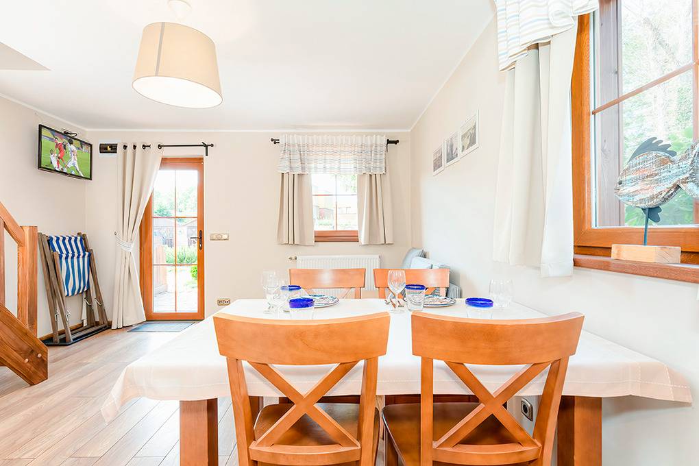 Nebenkosten Endreinigung 200 Zl. (wird bei Buchung erhoben). Kurtaxe. Bettwäsche, Handtücher vorhanden. Zusätzliche Leistungen Kostenloser Internetzugang über WLan. 1 zusätzlicher Bettwäsche/Handtücherwechsel während des Aufenthaltes 10 €/ Pers. 1 Pkw-Stellplatz im Preis inklusive. Fahrradverleih nach Verfügbarkeit. Kaution 100 €. Kinder Babybett/Hochstuhl nur innerhalb der maximalen Personenzahl, jeweils ohne Berechnung. Haustier 6 €/Tag, max. 2 Hunde (Anmeldung).Räume & Aufteilung
