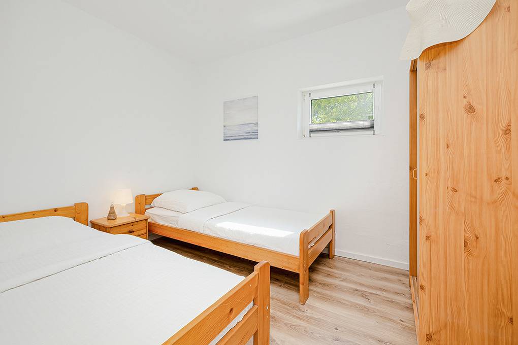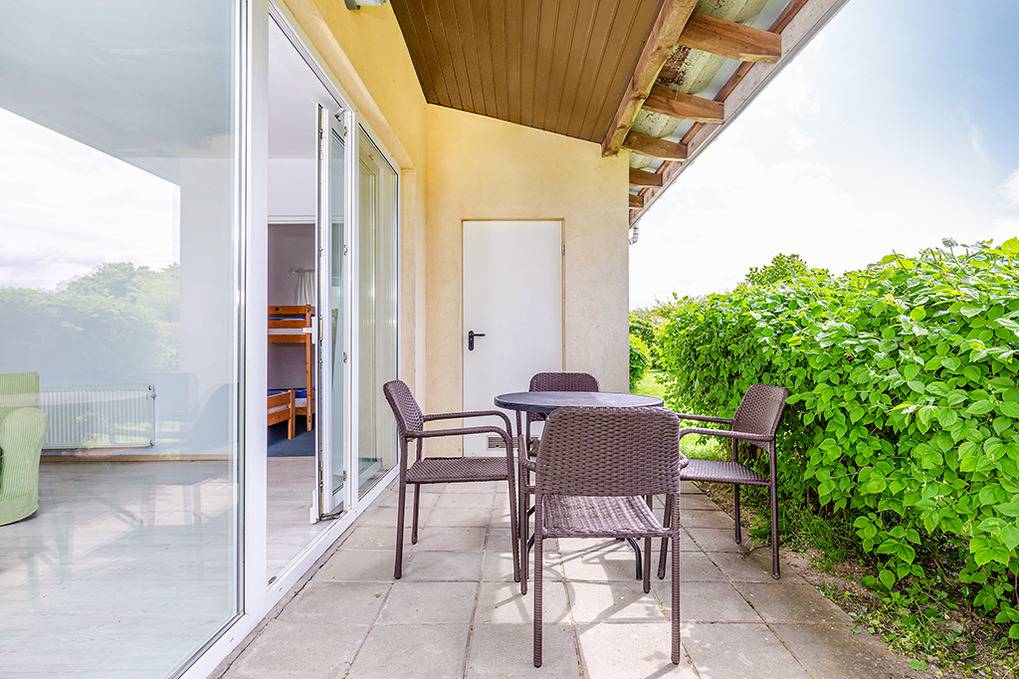 PL 55.7 Ferienhaus 1-4 Pers.: 3-Zimmerhaus mit ca. 53 qm Wohnfläche. Wohn-/Essraum mit Sitzgarnitur, Sat-TV (deutsche Programme), Esstisch, Küchenzeile (2 E-Platten). Zwei 2-Bettzimmer. Bad/WC. Terrasse mit Sitzmöbeln.