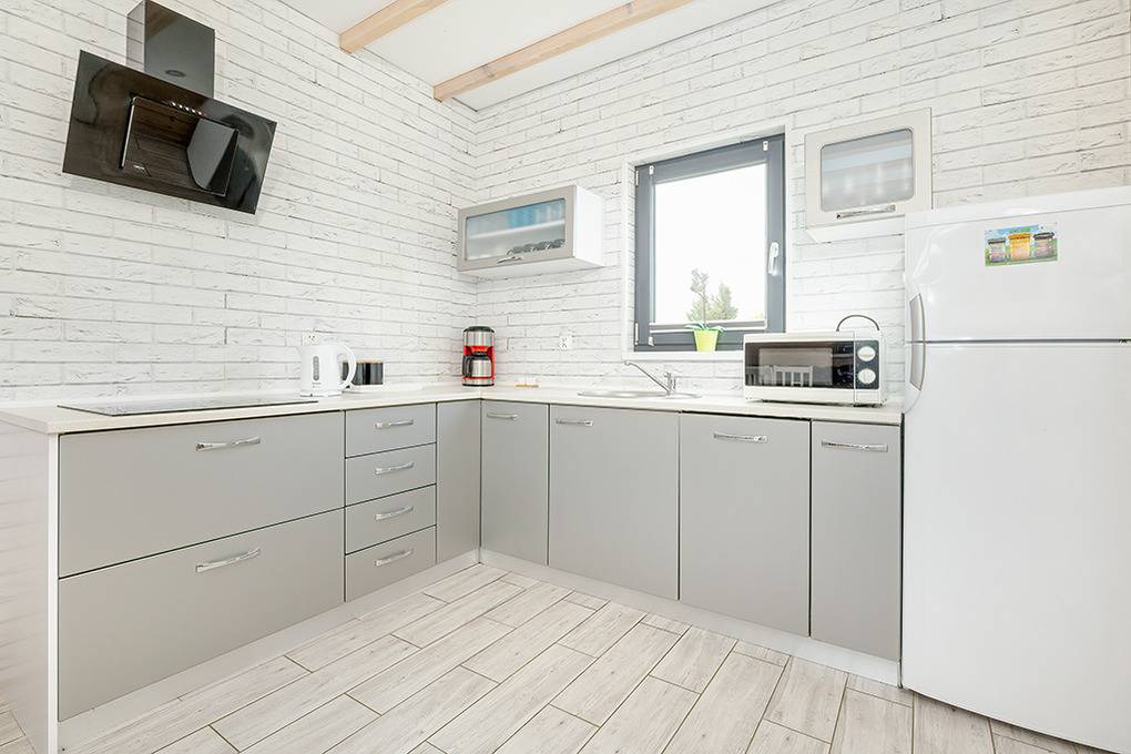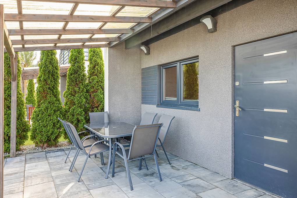PL 55.29 Ferienhaus 1-8 Pers.: Komfortables 3-Zimmerhaus mit ca. 70 qm Wohnfläche über 2 Etagen. Parterre: Wohn-/Essraum mit Ecksofa (Ausziehcouch 2 Pers.), Smart-TV mit deutschen Programmen, großem Esstisch, moderner, gut ausgestatteter Küchenzeile (4 E-Platten, Abzugshaube, Mikrowelle, Tiefkühltruhe 30 l, Spülmaschine). Bad: Du, Wb, WC. 1. Etage: 4-Bettzimmer mit kleinem Balkon. Doppelzimmer. Separates WC. Terrasse mit Sitzmöbeln, Grill.