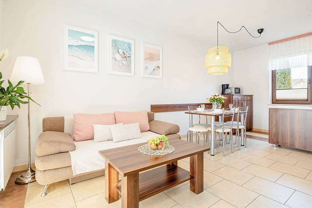 Nebenkosten Kurtaxe. Bettwäsche, Handtücher inkl. Zusätzliche Leistungen Kostenloser Internetzugang über W-Lan. Parkplatz 20 Zl/Tag. Kaution 150 €. Kinder Babybett zusätzlich zur maximalen Personenzahl 15 Zl./Tag (Bestellung). Hochstuhl 5 Zl./Tag (Bestellung). Haustier nicht erlaubt.Räume & Aufteilung