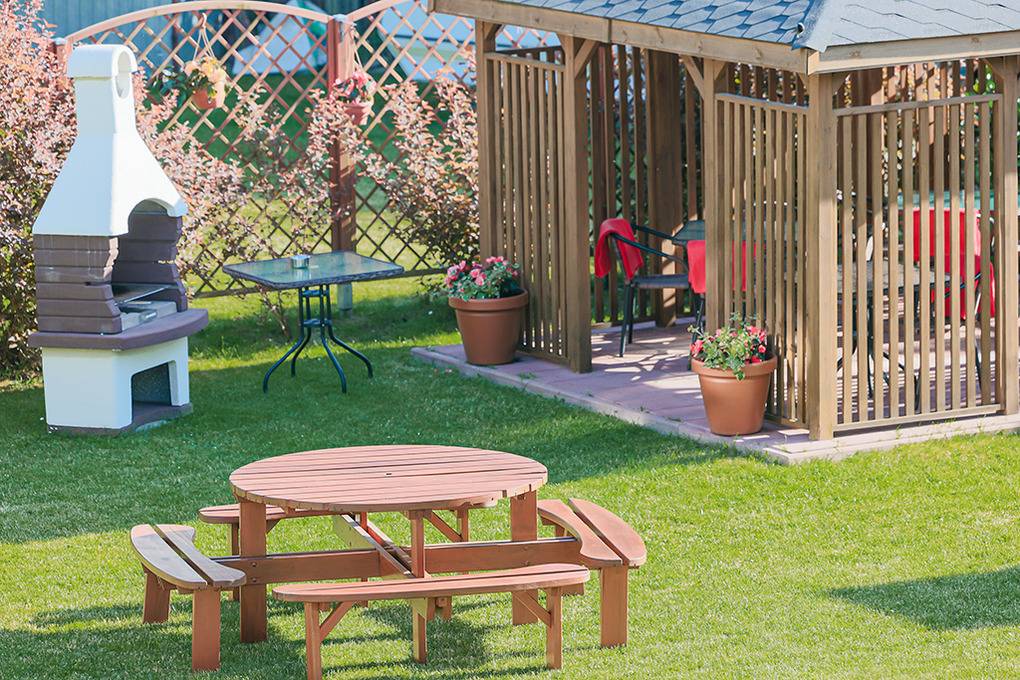 Haus: Moderne Ferienanlage mit Reihenhäusern und Ferienwohnungen. Schöner Kinderspielplatz mit Rutsche, Schaukel, Sandkasten, Sitzecke umgeben von einer großen Rasenfläche. Parkplatz auf umzäunten Grundstück. Großzügige, komfortable Reihenhäuser. Nichtraucherhaus. Geschmackvolle, moderne Einrichtung. Kostenloser Internetzugang über W-Lan. Zentralheizung. Kleine Terrasse mit Sitzmöbeln.