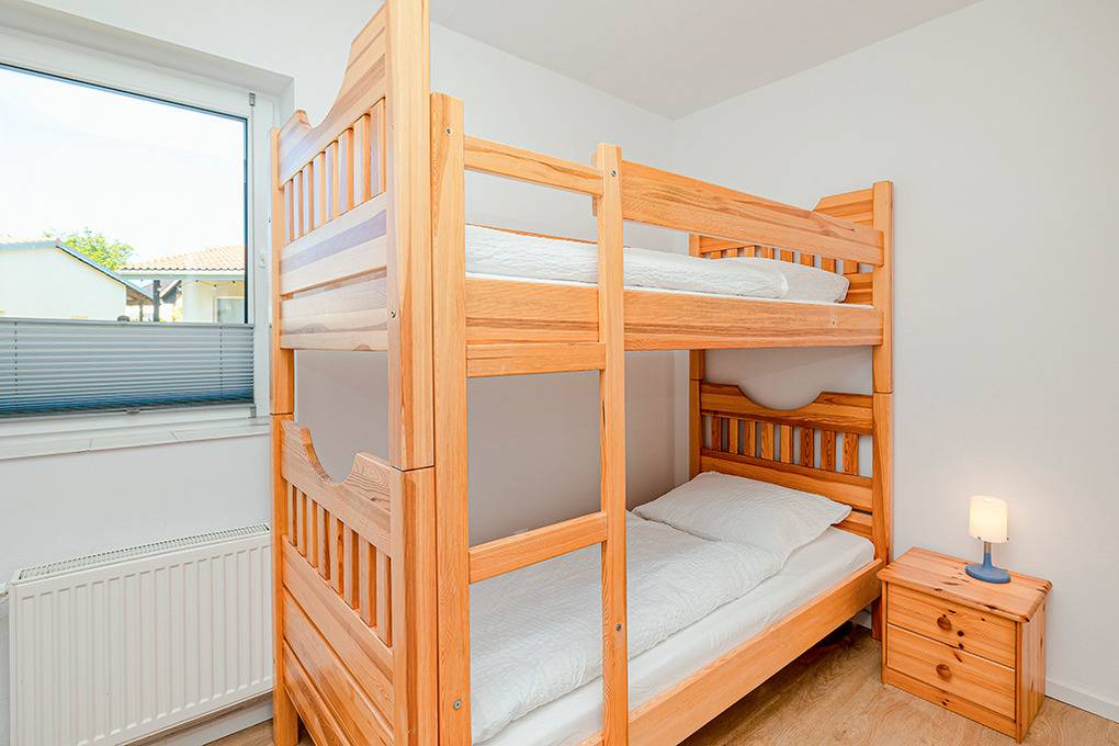 PL 55.8 Ferienhaus 3-6 Pers.: 4-Zimmerhaus mit ca. 57 qm Wohnfläche. Wohn-/Essraum mit Sitzgarnitur, Sat-TV (deutsche Programme), Esstisch, Küchenzeile (2 E-Platten). Drei 2-Bettzimmer (eins davon mit Etagenbett). Bad/WC.
