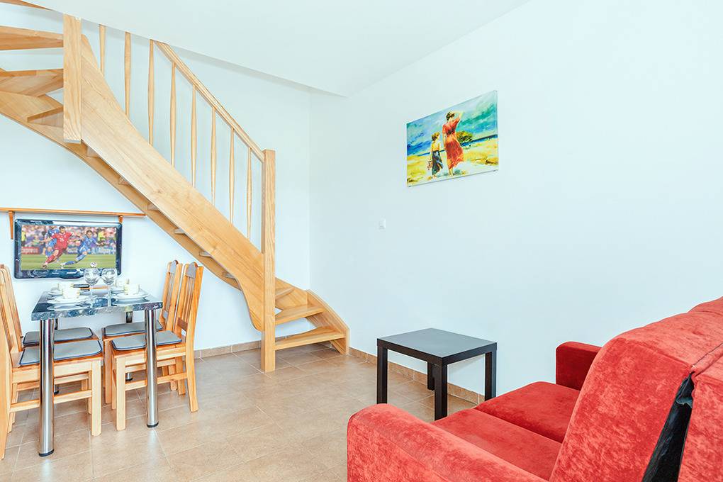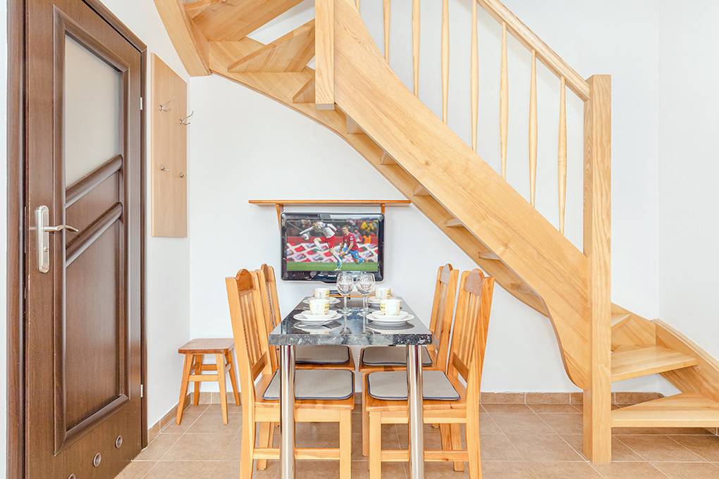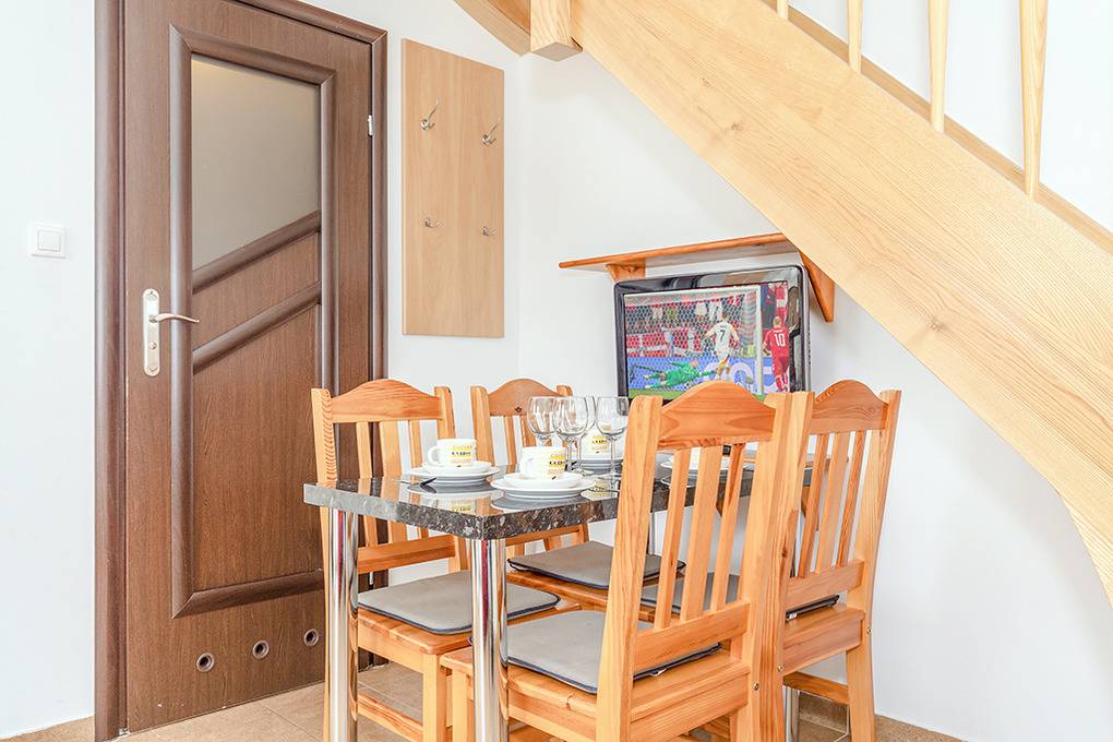 Nebenkosten Strom nach Verbrauch (nur im Zeitraum 17.1.-20.6.26 und 5.9.25-23.1.27). Kurtaxe. Bettwäsche vorhanden. Handtücher mitzubringen. Zusätzliche Leistungen 1 Parkplatz inklusiv. Kinder Babybett zusätzlich zur maximalen Personenzahl 10 Zl./Tag (Bestellung). Hochstuhl 10 Zl./Tag (Bestellung). Haustier nicht erlaubt.Räume & Aufteilung