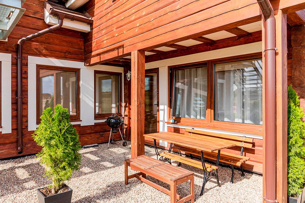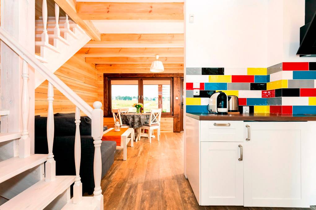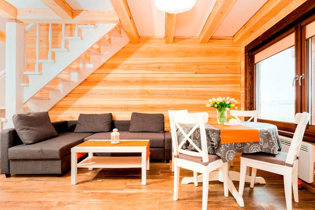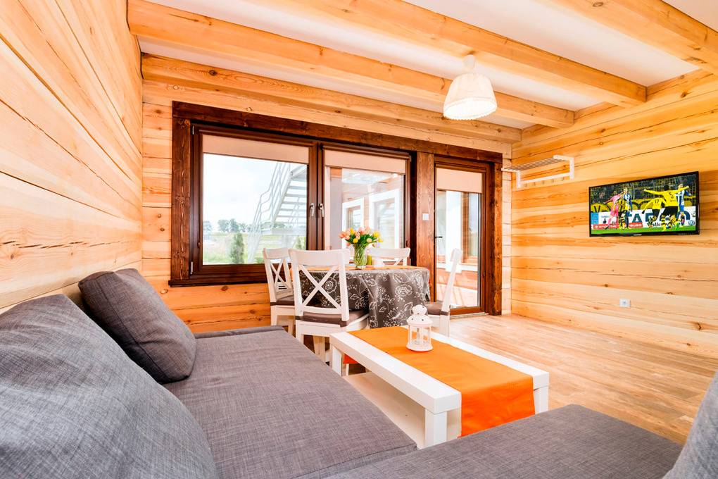 Gemütliche Ferienhäuser mit moderner, freundlicher Einrichtung. Kostenloses Internet (WiFi). Zentralheizung, Warmwasser über E-Boiler (100 l). Terrasse mit Sitzmöbeln, Grill. 1 Pkw-Parkplatz/Ferienhaus auf dem umzäunten Grundstück.