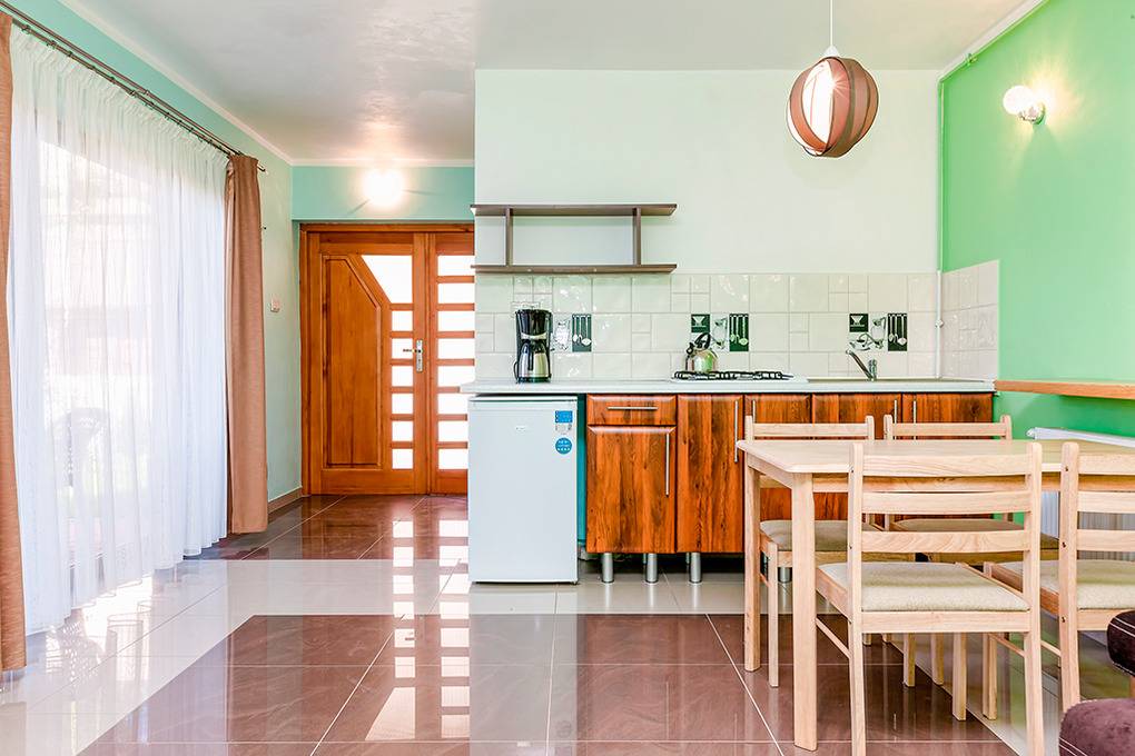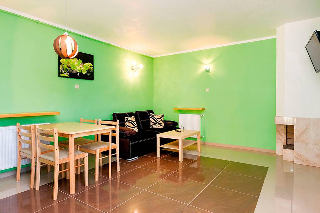 Nebenkosten Strom, Wasser nach Verbrauch. Heizung nach Verbrauch (ca. 40 Zl./Tag). Kurtaxe. Bettwäsche vorhanden. Handtücher mitzubringen. Zusätzliche Leistungen Kaminholz 35 Zl./Sack. 1 Pkw-Stellplatz im Preis inklusive. Kostenloser Internetzugang über W-Lan. Kaution 500 Zl. Kinder Babybett nur innerhalb der maximalen Personenzahl 5 Zl./Tag (Bestellung). Hochstuhl 5 Zl./Tag (Bestellung). Haustier nicht erlaubt.Räume & Aufteilung