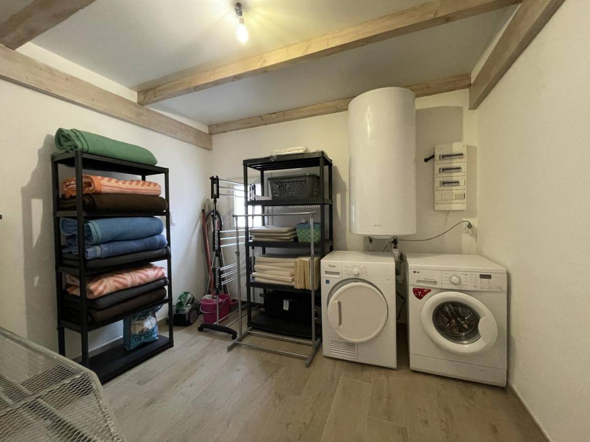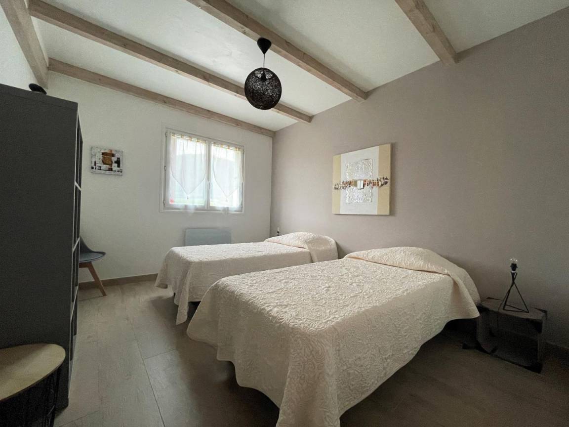 Ausgestattete Küche (Mikrowelle, Kühlschrank mit Gefrierfach), Wohnzimmer, Wohnzimmer (DVD-Player), 3 Schlafzimmer (2 Einzelbetten, 2 Einzelbetten), Dusche/WC, Waschküche (Wäschetrockner).