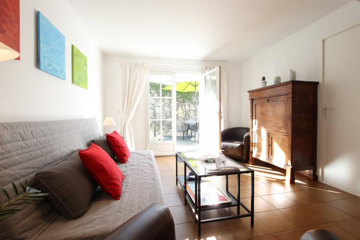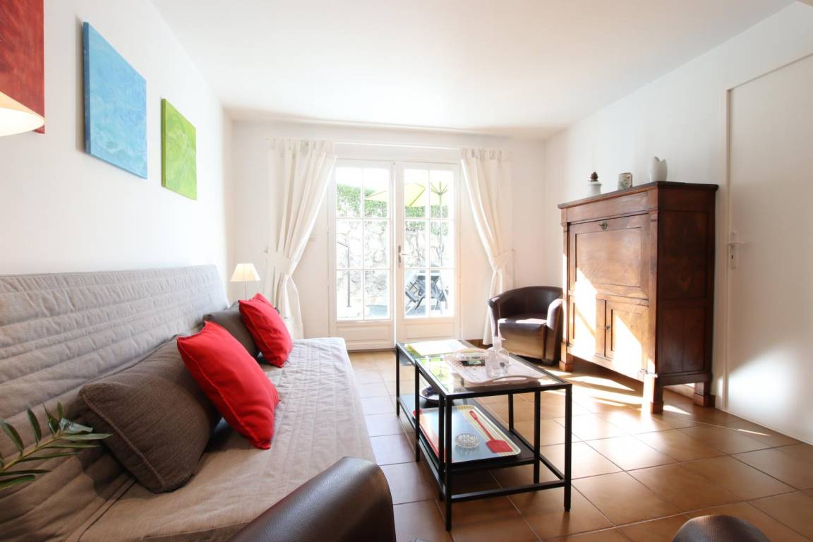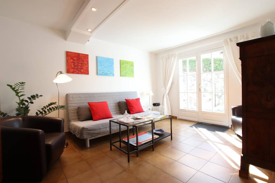 Ausgestattete Küche (Mikrowelle, Kühl-/Gefrierkombination, Induktionskochfeld). Wohnzimmer (Sofa, Sessel, TV). 1 Schlafzimmer (1 Doppelbett). Duschbad/WC.