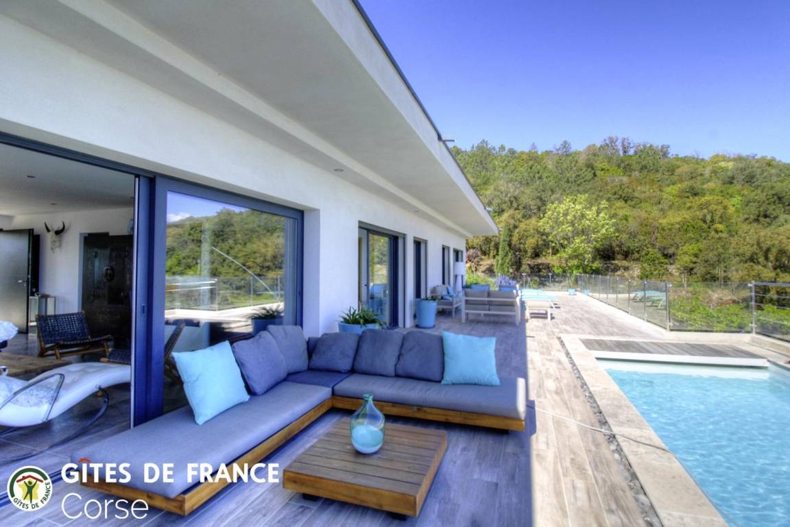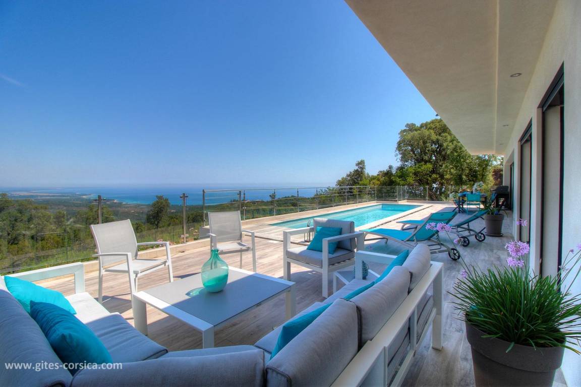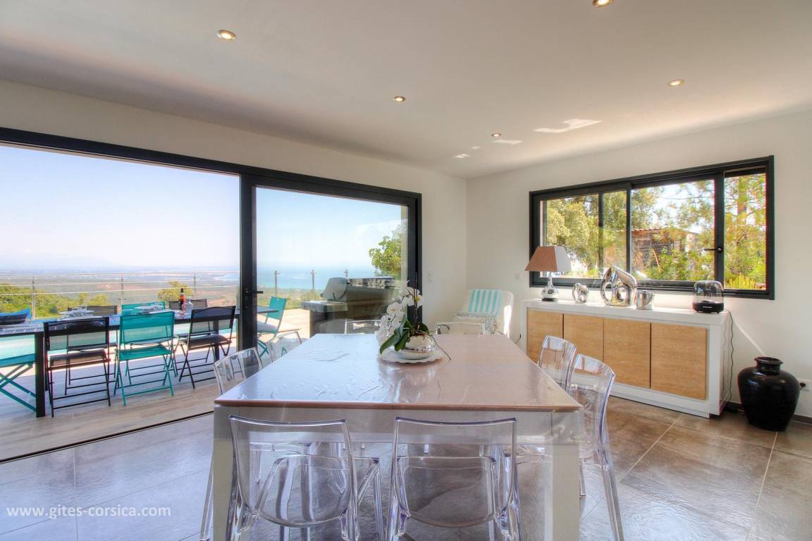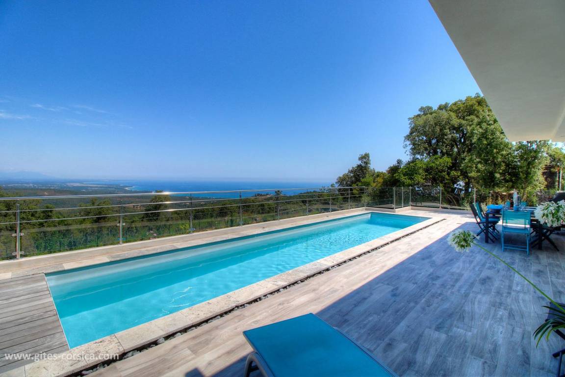„Très bon accueil de Véro (conseils judicieux pour les restos et activités dans la région, disponibilité ). Villa très confortable pour accueillir 8 personnes. Vue sur la mer exceptionnelle depuis la terrasse et la piscine, les grandes baies vitrées du séjour et des chambres. Endroit au calme sur les hauteurs de Solenzara, très beau jardin. À recommander sans hésitation!“