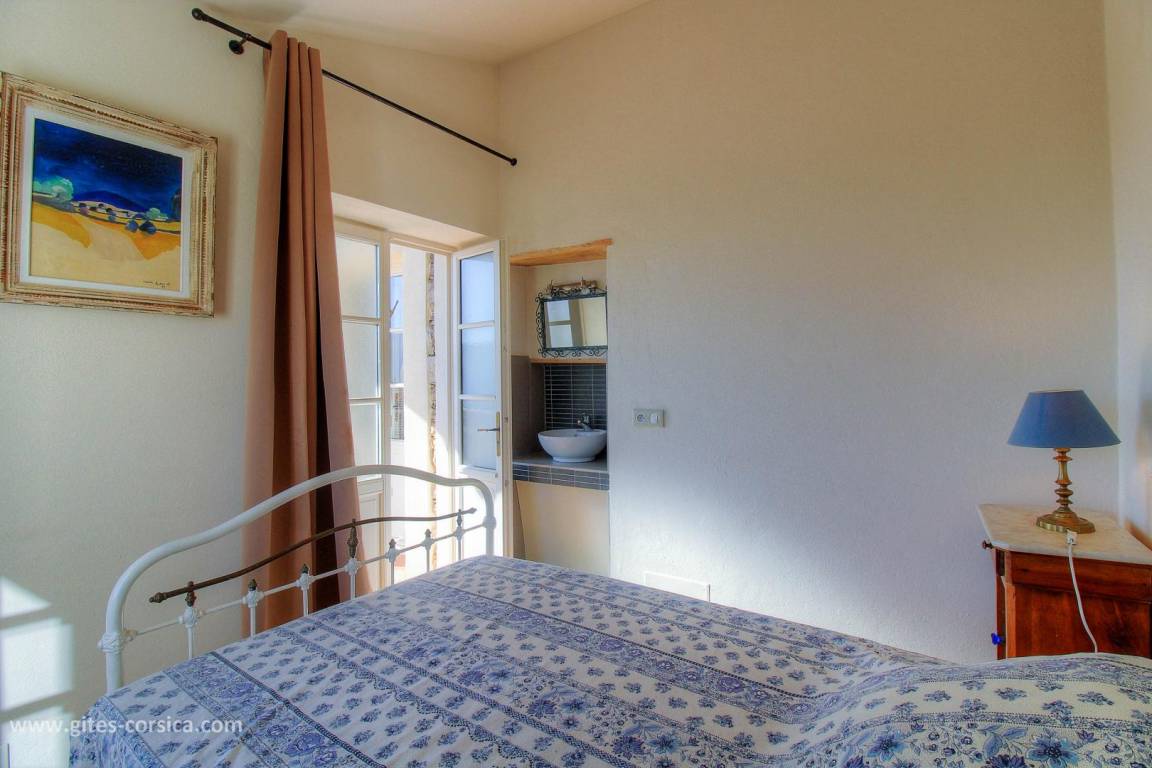 - 1 Schlafzimmer mit Zugang über einen überdachten Balkon (1 Bett 120 x190 cm), inklusive Waschbecken