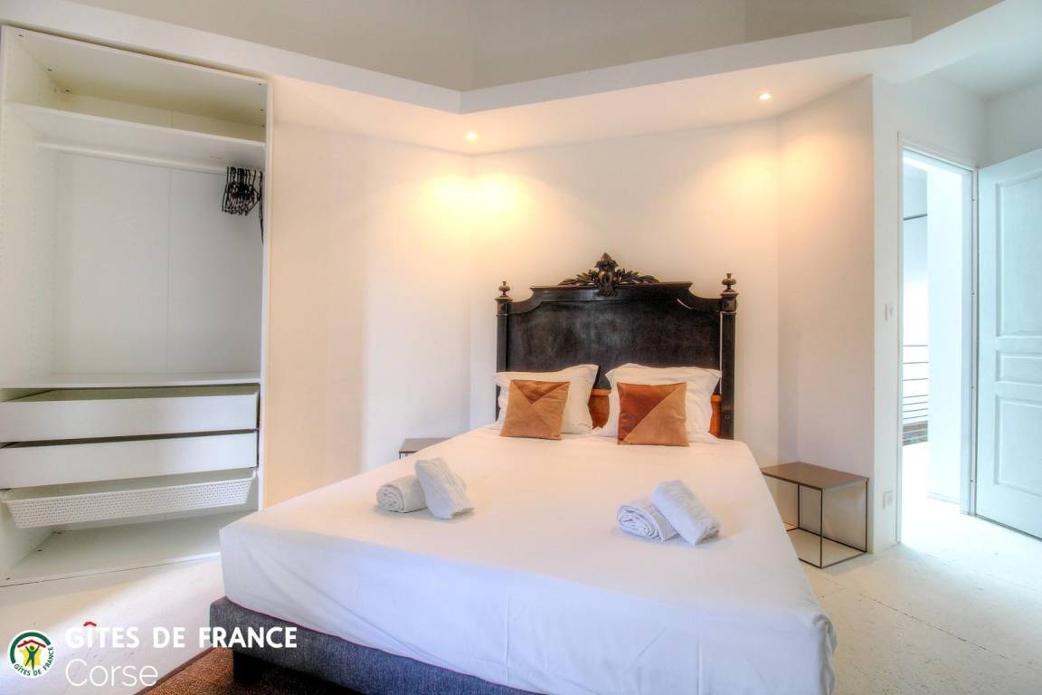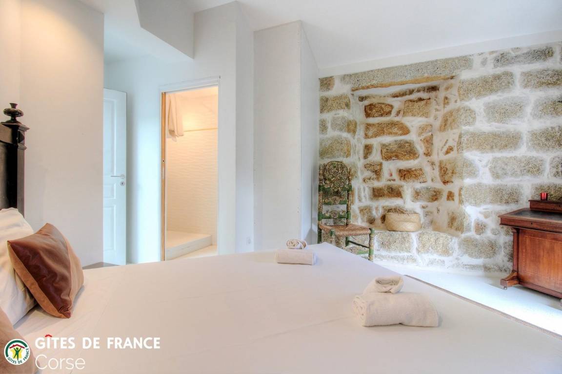- 1 Schlafzimmer mit einem Bett von 160x200 cm und angrenzendem Badezimmer.