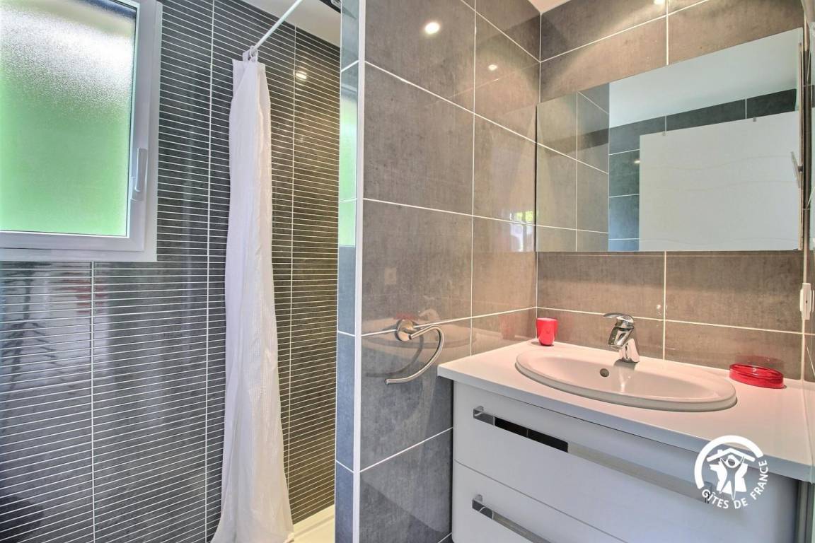 Dieses Haus, ideal für 4 bis 5 Personen, bietet einen einladenden und hellen Wohnbereich. Jedes Schlafzimmer verfügt über ein eigenes Bad und WC.