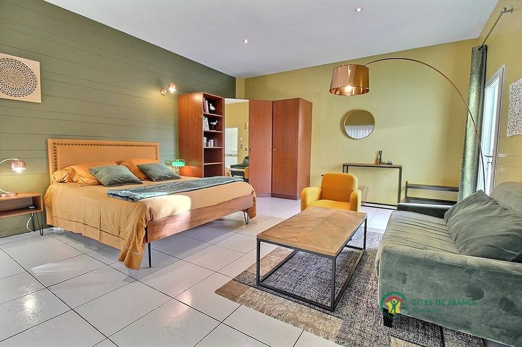 Diese Gîte grenzt an das Haus der Eigentümer und liegt auf einer Ebene in idealer Lage. Es verfügt über ein geräumiges Schlafzimmer mit Wohnbereich, eine ausgestattete Küche, ein Badezimmer, eine separate Toilette und eine Veranda, die mit den selten genutzten Eigentümern geteilt wird.