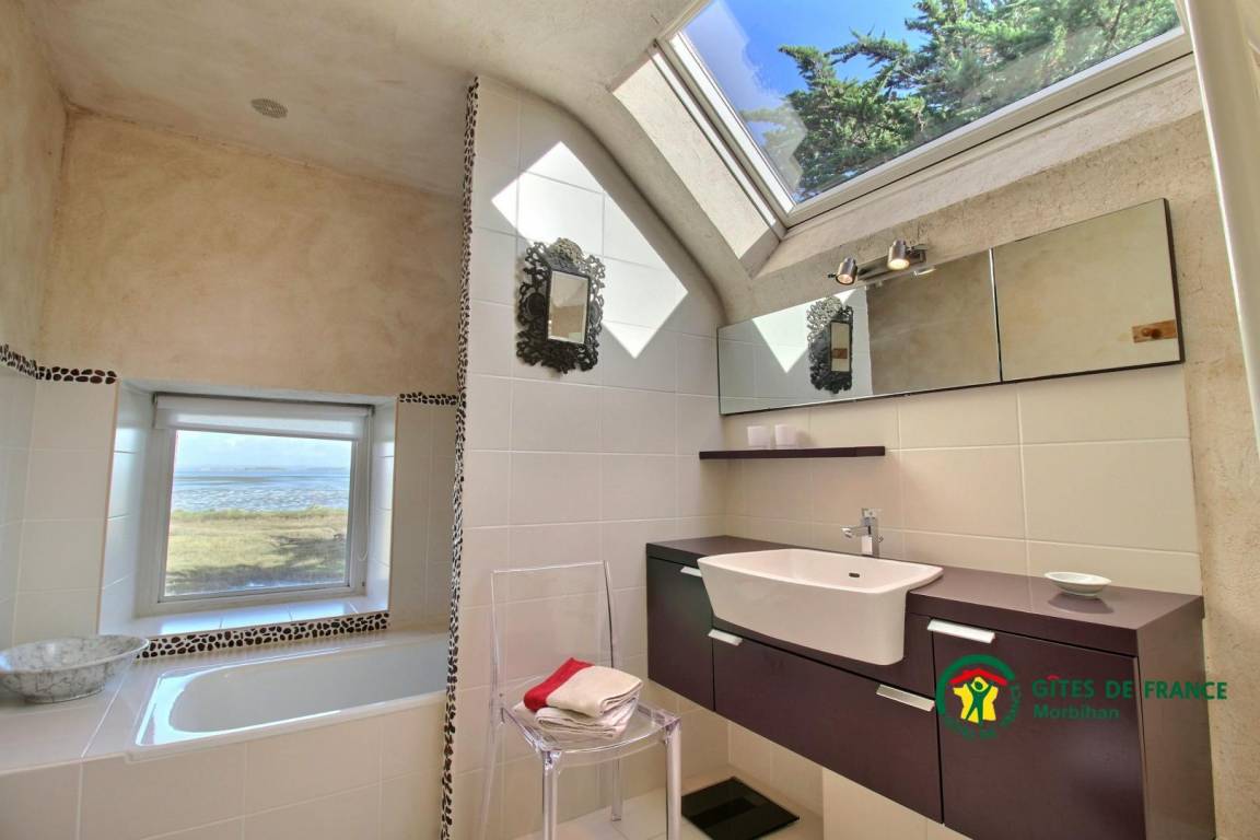 „Splendide localisation en pleine nature au cœur du golfe du Morbihan. Les lumières et les marées font évoluer le décor et l’ambiance: Le spectacle est à l’extérieur !Grande maison spacieuse, agréable pour de beaux moments en famille hors du temps, il n’y a qu’à se connecter à l’environnement et profiter du temps“