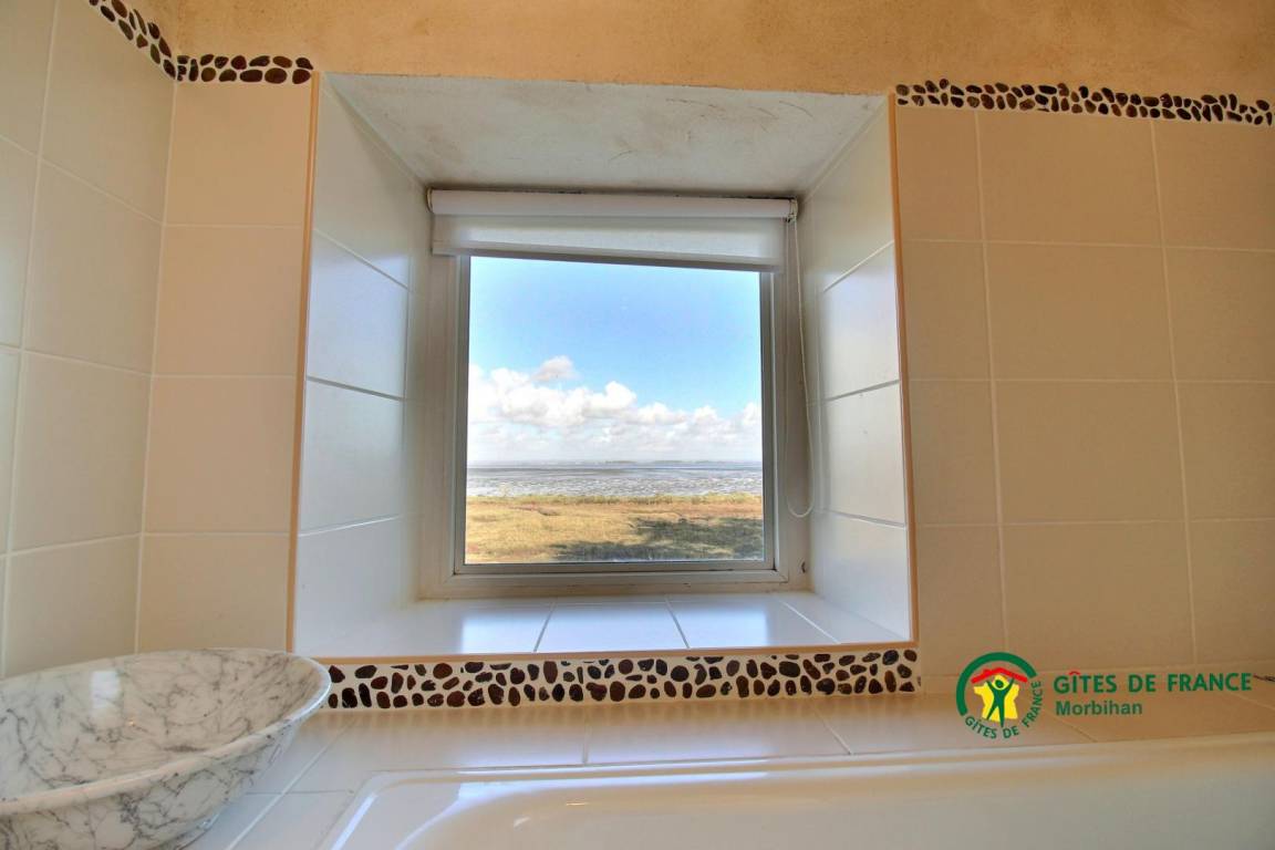 Dieses Haus profitiert von einer bemerkenswerten Lage mit Blick auf den Golf von Morbihan und eine alte Salzwiese. Zu allen Jahreszeiten und Gezeiten gibt es herrliche Landschaften. Dieser geschützte Ort ist auch Teil der ornithologischen Zone.