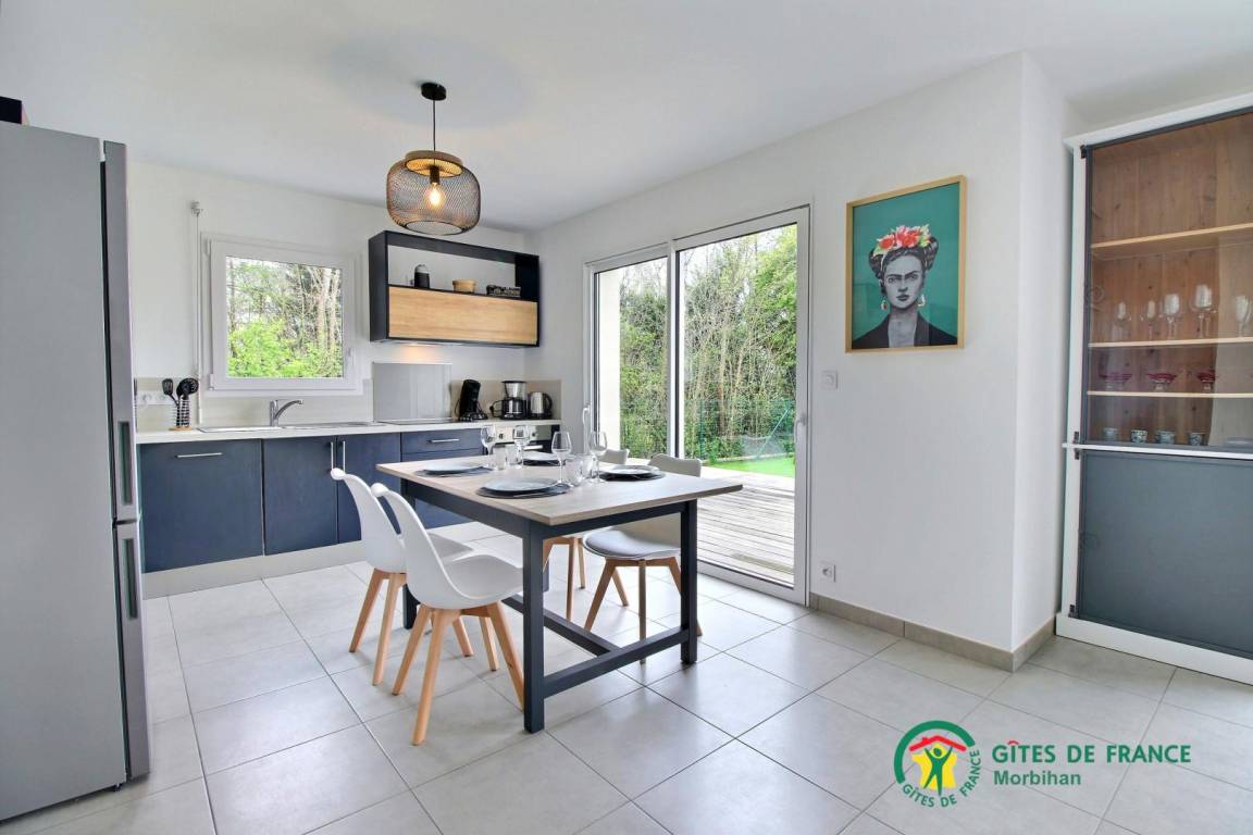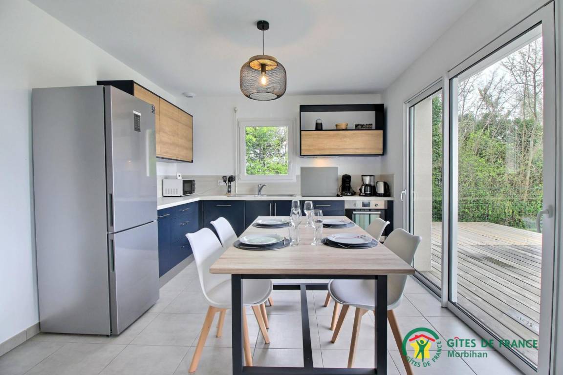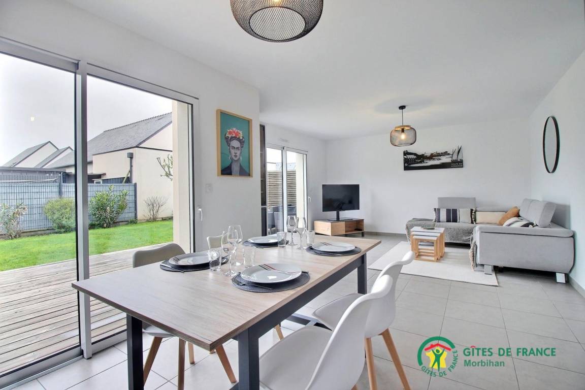 „Superbe maison dans un lotissement calme à Penvins, proche plage. Jardin agréable, avec arbres fruitiers et potager, sans vis-à-vis, parking sur place et maison très bien décorée et équipée. Accueil irréprochable par les hôtes. Un bon emplacement pour visiter la presqu’ile de Rhuys en famille. Très bon séjour !“