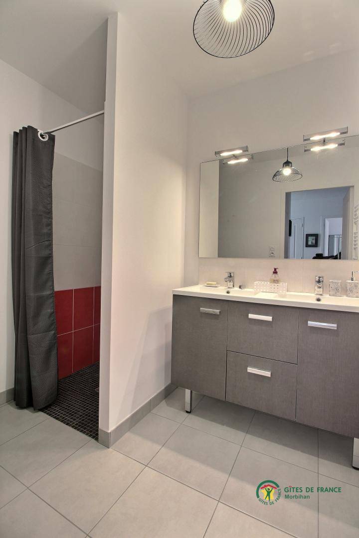 „Jolie maison lumineuse et confortable. Au calme avec terrasse et jardin. Très bon accueil des propriétaires. Très bien située pour visiter le golf du Morbihan d'un côté et profitez des plages de l'autre comme celle de suscino par exemple. Je recommande“