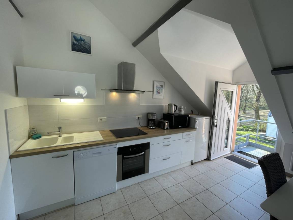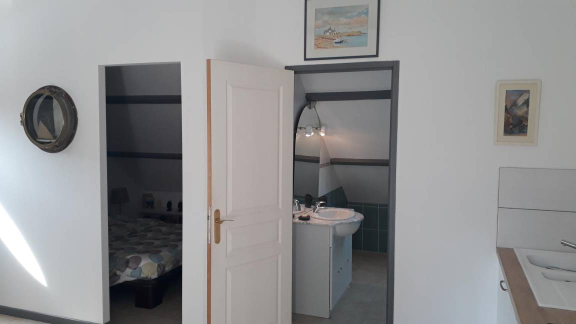 The studio, completely renovated is located on the 1st floor (above a gym). Access is via a private outdoor staircase.The cottage offers a living room with kitchen, dining area and lounge corner. An open sleeping area with 1 double bed / 140*190 close to the main room, bathroom with toilet.Outside, you will have access to a private garden with terrace to enjoy the sun and eat outside!Private parking.Gite adjoining the cottage #24045 and near the cottage #24074.