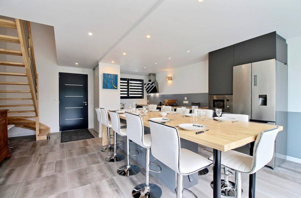 „Nous avons passé une très agréable semaine malgré le mauvais temps; nous avons bcp apprécié la maison lumineuse très bien agencée, avec une cuisine parfaitement équipée, et un jardin idéal pour les enfants. Elle est très bien située, au calme, près de la plage et d’une grande surface. On a bien aimé jouer au billard et au baby-foot…quand le ciel était trop gris pour aller à la mer. Merci à nos hôtes très aimables.“