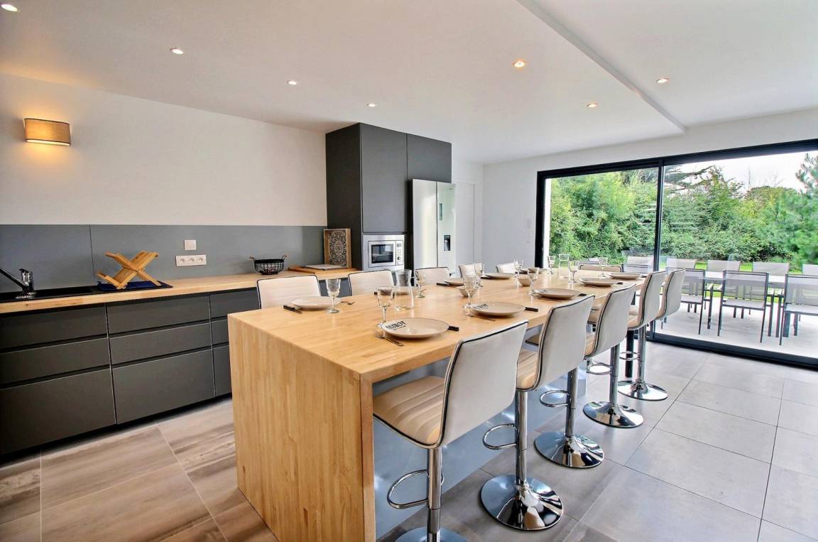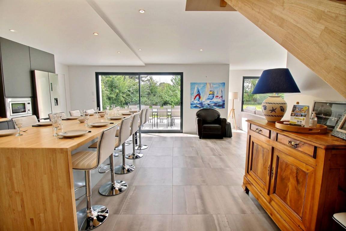 „Nous avons passé une très chouette semaine à Sarzeau début septembre. La maison est spacieuse, lumineuse, très propre et très bien équipée pour accueillir 12 personnes (on n’a pas l’impression d’être « les uns sur les autres »). Le jardin extérieur est également très agréable. L’endroit est calme. Nous avons également bien apprécié les aménagements intérieurs comme le baby foot, le billard et cuisine super bien équipée les jours plus pluvieux. La maison est vraiment très bien située à quelques dizaines de minutes à pied (ou quelques minutes en voiture) de belles plages, restaurants, commerces, chemins de randonnée, marchés, sites historiques, etc…Finalement, on tenait particulièrement à saluer et remercier la propriétaire pour son accueil chaleureux, sa disponibilité et sa bienveillance.“