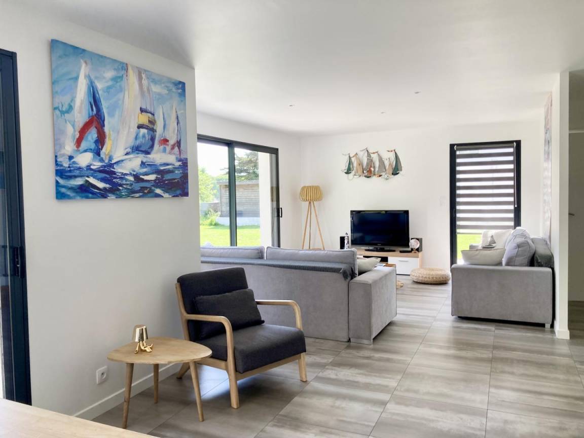 „Cette maison est remarquablement organisée par ses propriétaires, pour les vacances d'une famille nombreuse: Grandes pièces, salle de jeux, terrasse, 5 chambres, décorées et propres. En plus elle est à 500 m de la plage et du club de voile. Nous y avons passé un très bon séjour. Merci à Isabelle et ses proches.“
